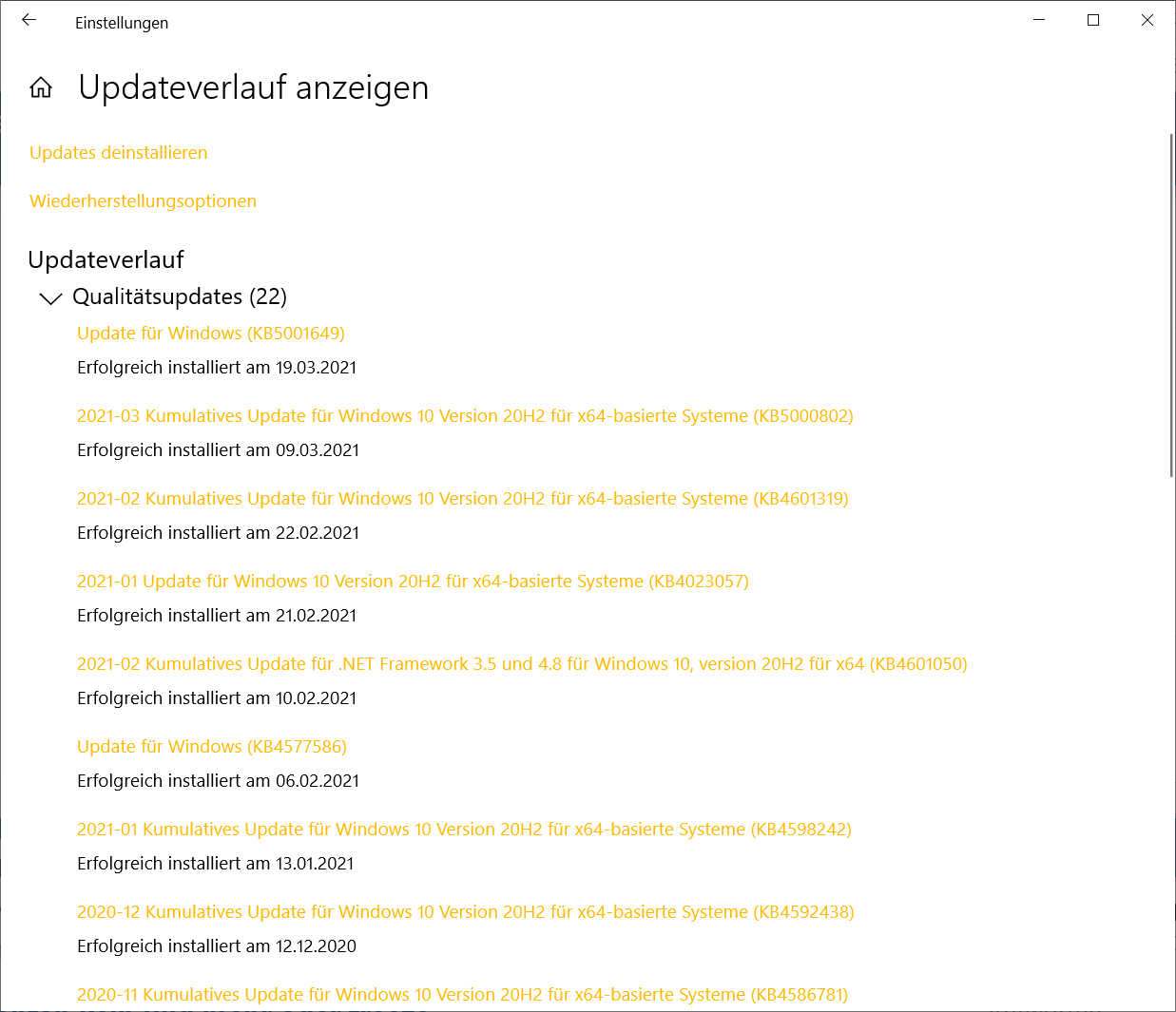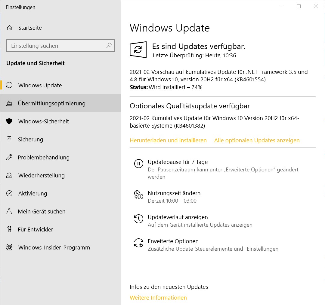 Da bin ich mir nicht sicher. Zum installieren wird jetzt das Update KB5000802 angezeigt. (2021-03 Kumulatives Update für Windows 10 Version 20H2 für x64-basierte Systeme).