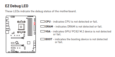Ich habe mir vor ein paar Monaten einen neuen PC gebaut und wollte jetzt meinen alten PC an einen Freund verkaufen. Jetzt startet zwar der PC und alle Lüfter drehen sich, aber es kommt kein Bild. Bei den EZ Debug LEDs leuchten nur die CPU und die DRAM LED, die VGA und BOOT LED sind aus. Auf meinem Main-PC gehen die Monitore aber.