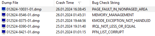 ich habe mal für den fall das Jemand sich mit den Minidump Dateien auskennt als download Hinzugefügt, vielleicht erkennt ihr etwas was ich übersehe letzter Komplett ausfall war ungefähr zwischen17:19 und 17:21.