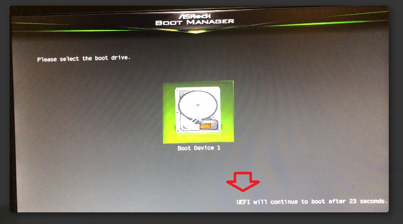 Dann seh ich das Boot Fenster für 1 Sekunde und das System startet.