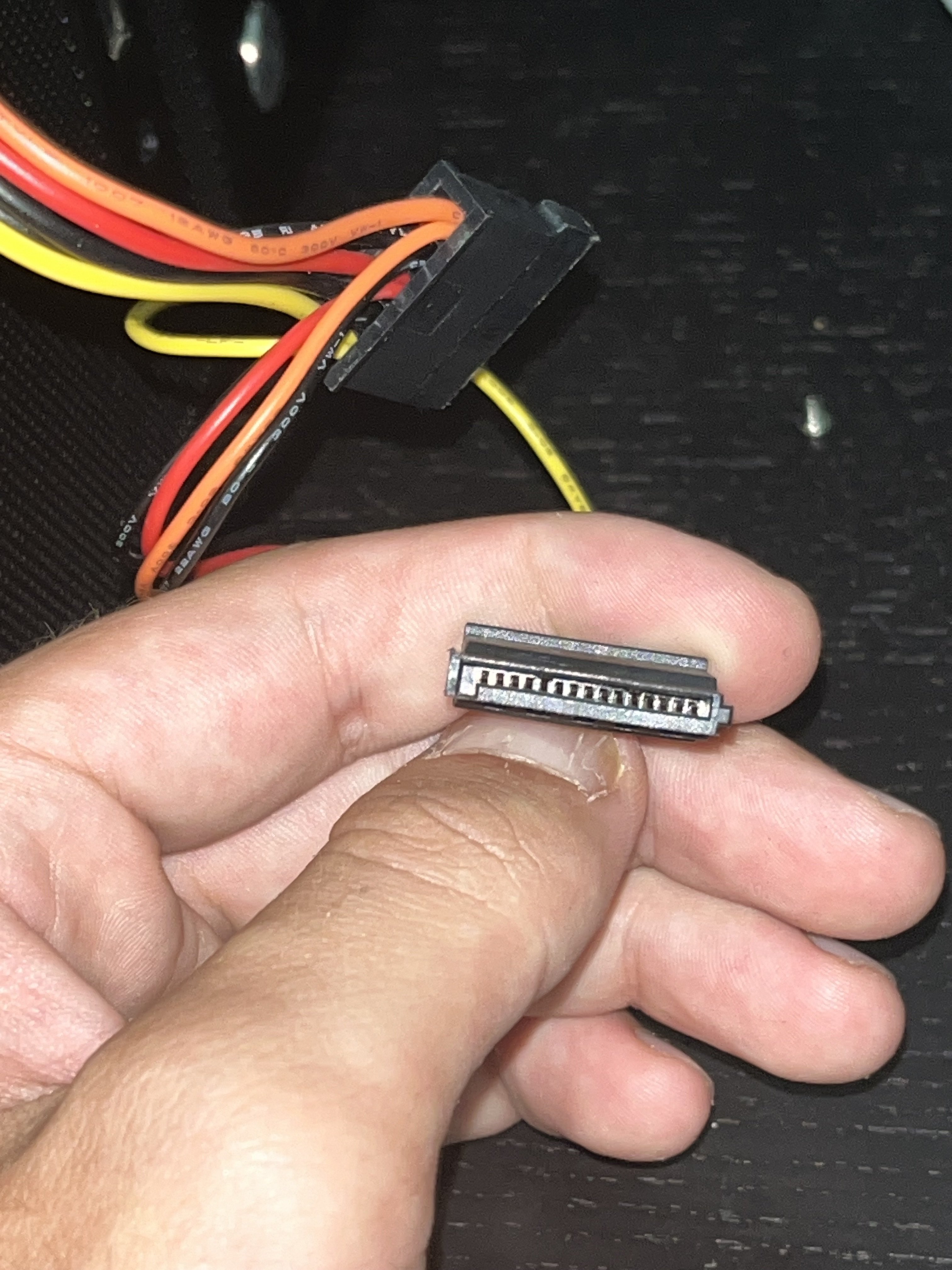 Ich hab eine gebrauchten computer auf kleinanzeigen gekauft, alles hat erstmal top funktioniert. Der verkäufer gab mir den PC mit einer 256GB 970EVOPLUS festplatte verbaut und einer 500GB 970EVOPLUS festplatte extra. Da mir jedoch 256 zu wenig sind wollte ich gucken ob ich die 500gb einbauen kann. Ich sah mehrere Kabel mit Schwarz-Rot-Gelb-Orange Adern und eine sah aus als würde die Festplatte da rein passen. (ich hatte an diesen Kabeln bei meinem alten PC 2 festeplatten angeschlossen gehabt, diese waren jedoch um einiges größer, deswegen dachte ich es könntr eventuell funktionieren) Ich hatte jedoch vor lauter fokus vergessen den PC auszuschalten. Als ich die festplatte da reinsteckte ging der pc plötzlich aus und erst wieder an nachdem ich das Netzkabel einmal trennte und wieder reingesteckt habe. Jetzt startet der PC die Lüfter laufen ein Rotes mainboard licht leuchtet aber es passiert nichts am monitor. Alle USB ports und jeder input den dieser PC besitzt funktioniert nicht mehr sprich keine Tastatur kein Monitor keine Maus keine Kopfhörer nichts funktioniert. Hatte auch versucht mein handy zu laden am USB Port um sie zu testen, kommt auch nichts an.