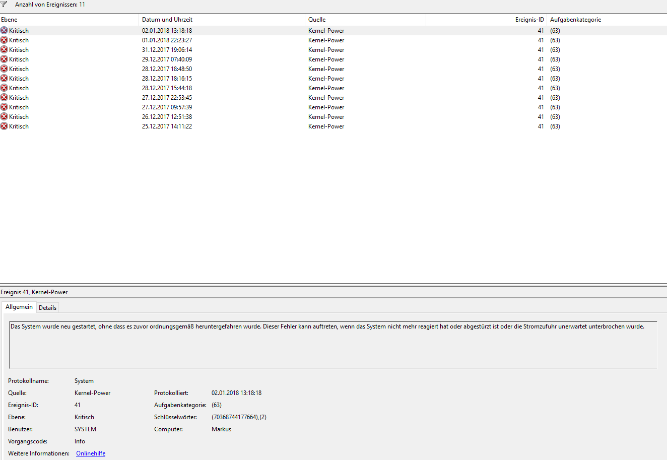 Immer wenn ich iwas "leistungfressendes" mache sprich Photoshop oder 5-6 Programme offen habe startet er einfach neu.