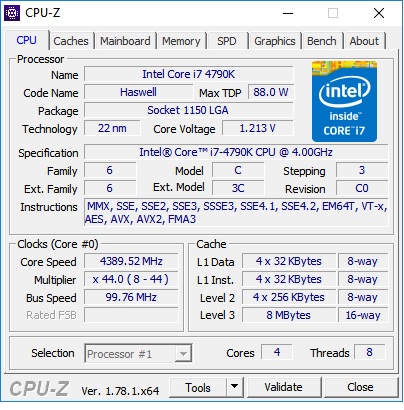 Intel Core i7-4790K 4.00GHz 8MB 350 MHz / 1300 MHz Haswell Refresh 22nm C0 88W 100 F9