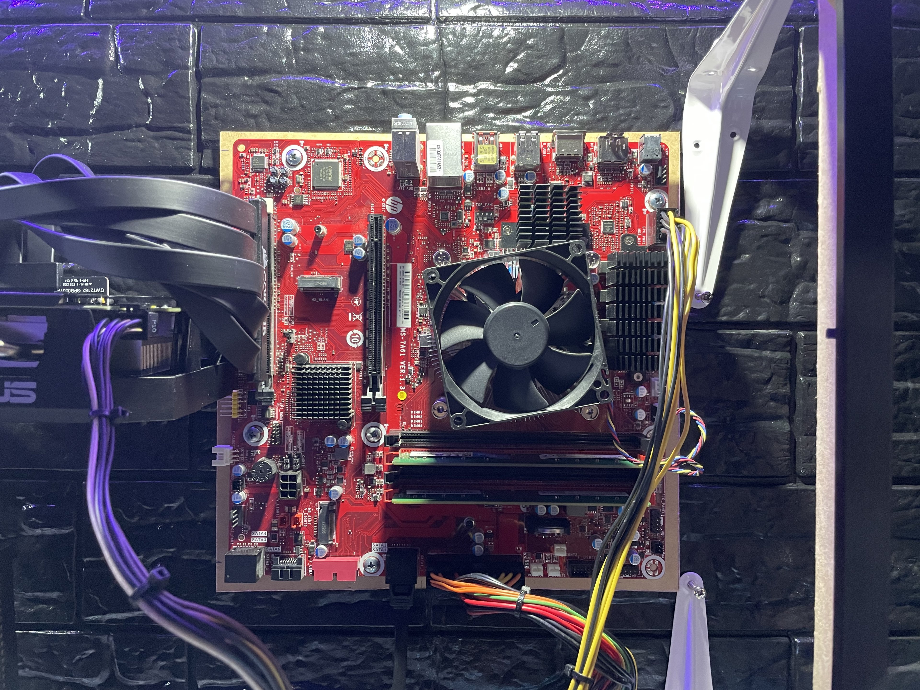 Ich habe soeben meinen Pc Komplett aus dem Gehäuse ausgebaut und ihn an die wand gehangen, nun startet er auf und stellt sich nachdem er den CPU Lüfter hochdreht wieder ab :/