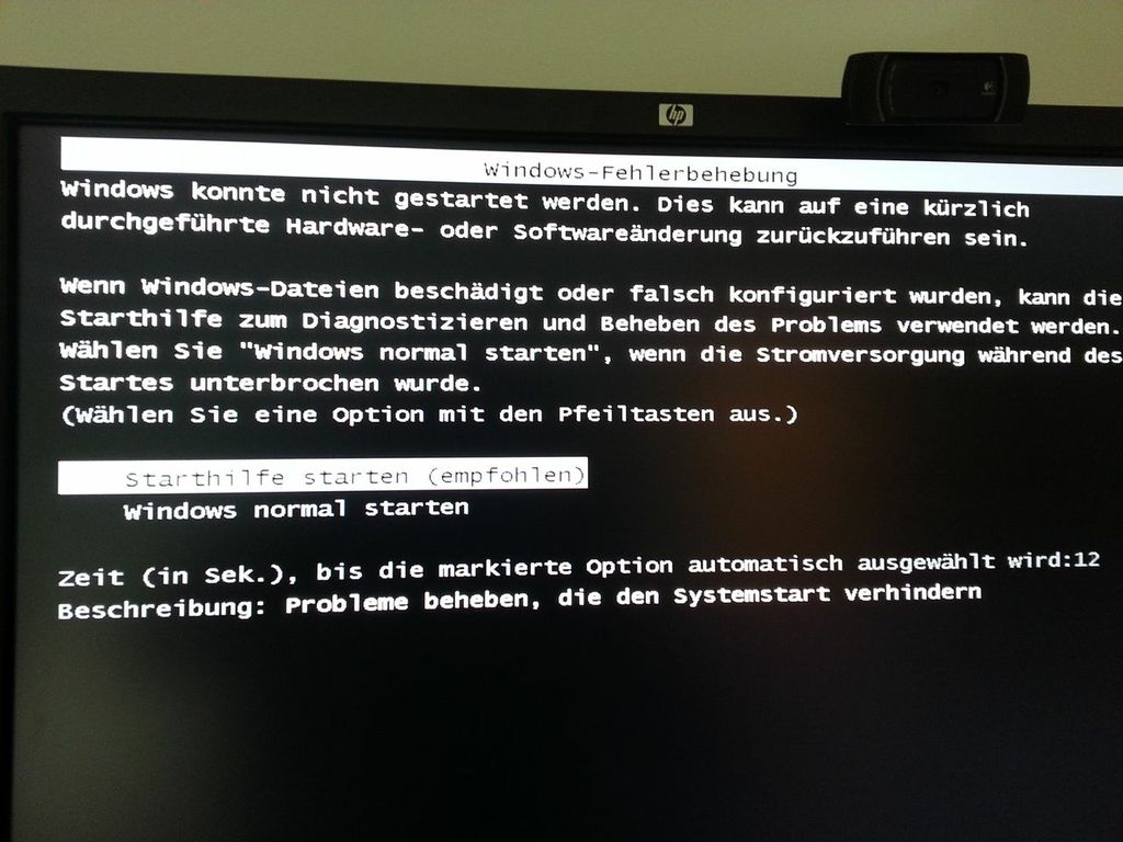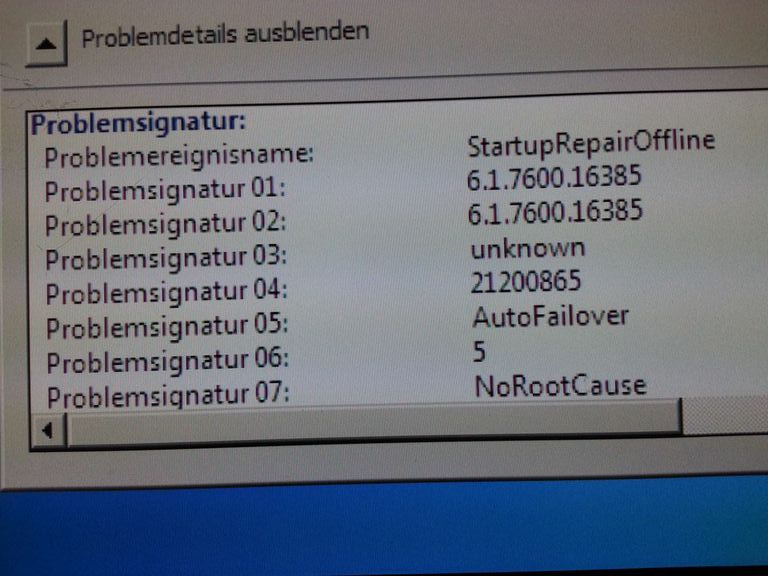 ich habe eine interne Festplatte auf der nur Daten waren vom Computer abgesteckt, das SATA Kabel hab ich auch vom Mainboard abgesteckt. Zuerst kam dann die Meldung, dass die Boot MGR fehlt weil meine Systemplatte nicht mehr als Startplatte eingetragen war. Das hab ich geändert, aber dann kam dieser Bildschirm: