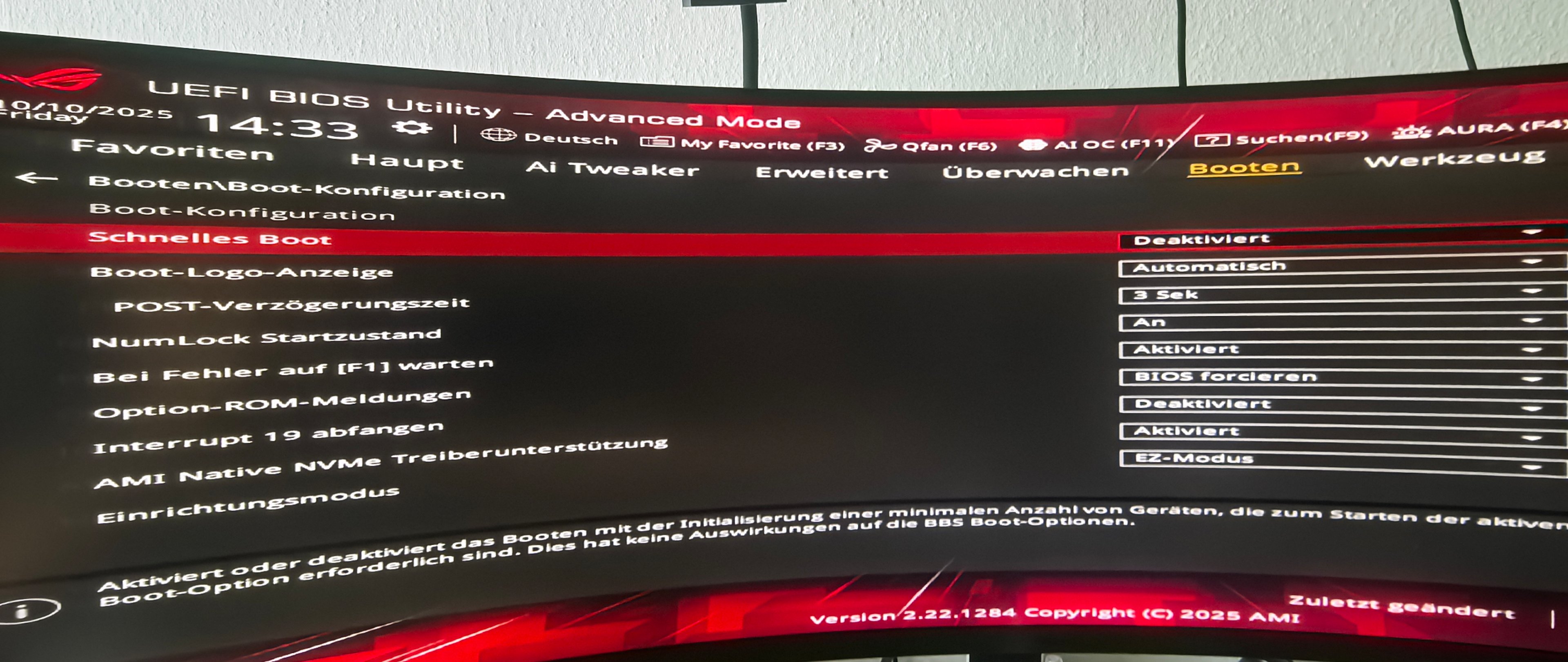 ...Wenn ich direkt von Windows aus neustarte, kommt nach dem Neustart keine Anzeige mehr, wo ich aufgefordert werde F2 oder ESC zu drücken, um ins BIOS zu kommen.