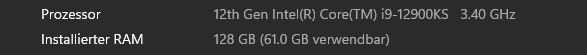 Nun zeigt unter Dieser PC/Eigenschaften 128Gb an aber nur 61 GB sind verwendbar.