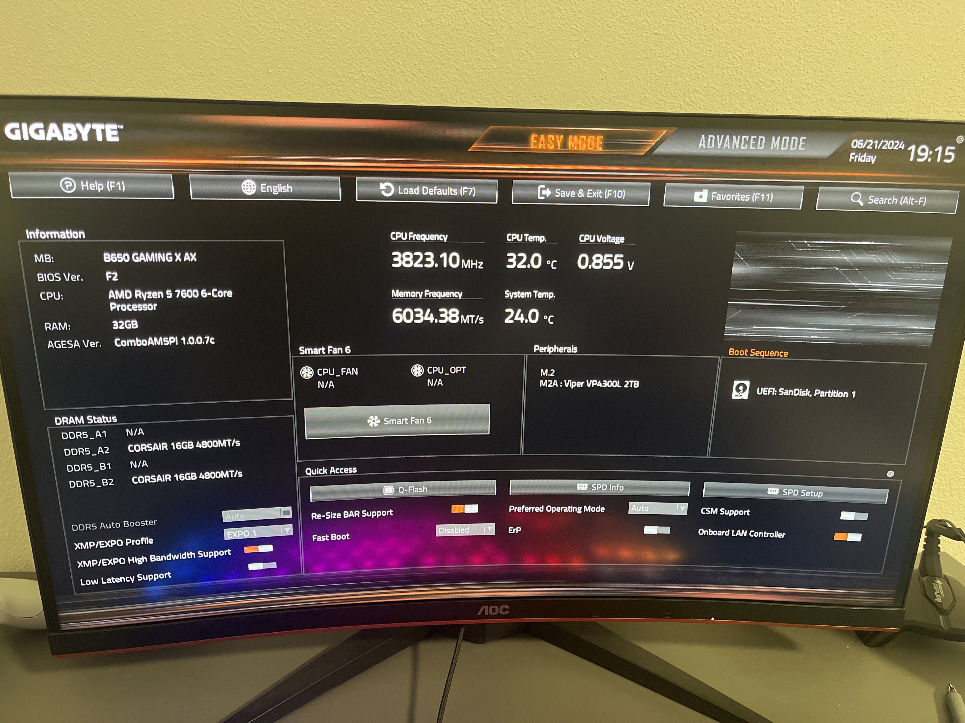 - Mainboard: Gigabyte B650 Gaming X AX Rev. 1.5