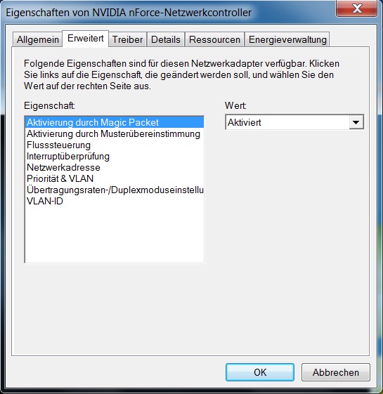 Magic Packets ist bei jedem Ethernet-Treiber voreingestellt - das ist die Basis dafür, dass WoL funktioniert