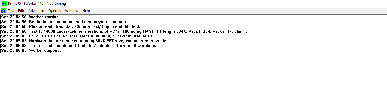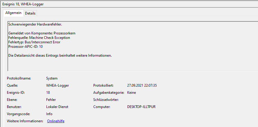 Habe ein CinebenchR23 torture test gemacht, ein in Memtest86, FurMark torture test und alles war in Ordnung... nur beim Prime95 gab es einen Error (im beigefügten Bild zu sehen). Habe mit Afterburn meine Temperatur im Blick gehabt und die war in Ordnung. Habe auch einmal FurMark und Cinebench gleichzeitig laufen lassen und der Pc ist nicht neu gestartet.