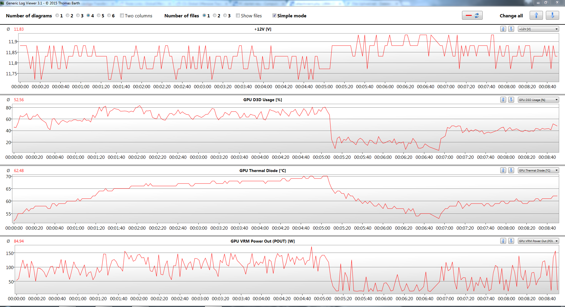 Date,Time,"Virtual Memory Commited [MB]","Virtual Memory Available [MB]","Virtual Memory Load [%]","Physical Memory Used [MB]","Physical Memory Available [MB]","Physical Memory Load [%]","Page File Usage [%]","Core #0 VID [V]","Core #1 VID [V]","Core #2 VID [V]","Core #3 VID [V]","Core #0 Clock [MHz]","Core #1 Clock [MHz]","Core #2 Clock [MHz]","Core #3 Clock [MHz]","Bus Clock [MHz]","Uncore Clock [MHz]","Core #0 Usage [%]","Core #1 Usage [%]","Core #2 Usage [%]","Core #3 Usage [%]","Max CPU/Thread Usage [%]","Total CPU Usage [%]","On-Demand Clock Modulation [%]","Core #0 Thermal Throttling [Yes/No]","Core #1 Thermal Throttling [Yes/No]","Core #2 Thermal Throttling [Yes/No]","Core #3 Thermal Throttling [Yes/No]","Core #0 Ratio [x]","Core #1 Ratio [x]","Core #2 Ratio [x]","Core #3 Ratio [x]","Uncore Ratio [x]","Package/Ring Thermal Throttling [Yes/No]","Core #0 [°C]","Core #1 [°C]","Core #2 [°C]","Core #3 [°C]","Core #0 Distance to TjMAX [°C]","Core #1 Distance to TjMAX [°C]","Core #2 Distance to TjMAX [°C]","Core #3 Distance to TjMAX [°C]","Core Max [°C]","CPU Package [°C]","CPU IA Cores [°C]","CPU GT Cores (Graphics) [°C]","CPU Package Power [W]","IA Cores Power [W]","Total DRAM Power [W]","Memory Clock [MHz]","Memory Clock Ratio [x]","Tcas [T]","Trcd [T]","Trp [T]","Tras [T]","Trfc [T]","Command Rate [T]","IA: PROCHOT [Yes/No]","IA: Thermal Event [Yes/No]","IA: Graphics Driver [Yes/No]","IA: Autonomous Utilization-Based Frequency Control [Yes/No]","IA: VR Thermal Alert [Yes/No]","IA: Electrical Design Point/Other (ICCmax,PL4,SVID,DDR RAPL) [Yes/No]","IA: Domain-Level PBM PL1 [Yes/No]","IA: Package-Level RAPL/PBM PL1 [Yes/No]","IA: Package-Level RAPL/PBM PL2,PL3 [Yes/No]","IA: Max Turbo Limit [Yes/No]","IA: Turbo Attenuation (MCT) [Yes/No]","GT: PROCHOT [Yes/No]","GT: Thermal Event [Yes/No]","GT: Graphics Driver [Yes/No]","GT: VR Thermal Alert [Yes/No]","GT: Max VR Voltage, ICCmax, PL4 [Yes/No]","GT: Domain-Level PBM PLGT [Yes/No]","GT: Package-Level RAPL/PBM PL1 [Yes/No]","GT: Package-Level RAPL/PBM PL2,PL3 [Yes/No]","RING: Thermal Event [Yes/No]","RING: Residency State Regulation [Yes/No]","RING: Running Average Thermal Limit [Yes/No]","RING: VR Thermal Alert [Yes/No]","RING: VR TDC [Yes/No]","RING: Max VR Voltage, ICCmax, PL4 [Yes/No]","RING: Domain-Level PBM PL1 [Yes/No]","RING: Package-Level RAPL/PBM PL1 [Yes/No]","RING: Package-Level RAPL/PBM PL2,PL3 [Yes/No]","Motherboard [°C]","CPU [°C]","Auxiliary [°C]","SYSTIN1 [°C]","SYSTIN2 [°C]","SYSTIN3 [°C]","CPU (PECI) [°C]","Vccin [V]","+12V [V]","AVCC [V]","+3.3V [V]","VIN4 [V]","+5V [V]","VIN6 [V]","3VSB [V]","Chassis Intrusion [Yes/No]","Drive Airflow Temperature [°C]","Drive Remaining Life [%]","Drive Failure [Yes/No]","Drive Warning [Yes/No]","Total Host Writes [GB]","Drive Temperature [°C]","Drive Failure [Yes/No]","Drive Warning [Yes/No]","Read Activity [%]","Write Activity [%]","Total Activity [%]","Read Rate [MB/s]","Write Rate [MB/s]","Read Total [MB]","Write Total [MB]","Read Activity [%]","Write Activity [%]","Total Activity [%]","Read Rate [MB/s]","Write Rate [MB/s]","Read Total [MB]","Write Total [MB]","GPU Thermal Diode [°C]","GPU Core Voltage (VDDC) [V]","GPU Aux Voltage (VDDCI) [V]","GPU Fan [RPM]","GPU Core Current [A]","GPU Aux Current [A]","GPU Core Power [W]","GPU Aux Power [W]","GPU Clock [MHz]","GPU Memory Clock [MHz]","GPU Utilization [%]","GPU D3D Usage [%]","GPU Memory Controller Utilization [%]","GPU I/O Utilization [%]","GPU Fan Speed [%]","GPU D3D Memory Dedicated [MB]","GPU D3D Memory Dynamic [MB]","PCIe Link Speed [GT/s]","GPU Memory Errors []","GPU VRM Temperature1 [°C]","GPU VRM Temperature2 [°C]","GPU VRM Voltage Out (VOUT/VID) [V]","GPU VRM Voltage In (VIN/+12V) [V]","GPU VRM Current In (IIN) [A]","GPU VRM Current Out (IOUT) [A]","GPU VRM Power Out (POUT) [W]","GPU VRM Power In (PIN) [W]","GPU VRM Temperature1 [°C]","GPU VRM Temperature2 [°C]","GPU VRM Voltage Out (VOUT/VID) [V]","GPU VRM Voltage In (VIN/+12V) [V]","GPU VRM Current In (IIN) [A]","GPU VRM Current Out (IOUT) [A]","GPU VRM Power Out (POUT) [W]","GPU VRM Power In (PIN) [W]","Total DL [MB]","Total UP [MB]","Current DL rate [KB/s]","Current UP rate [KB/s]","Total Errors []",