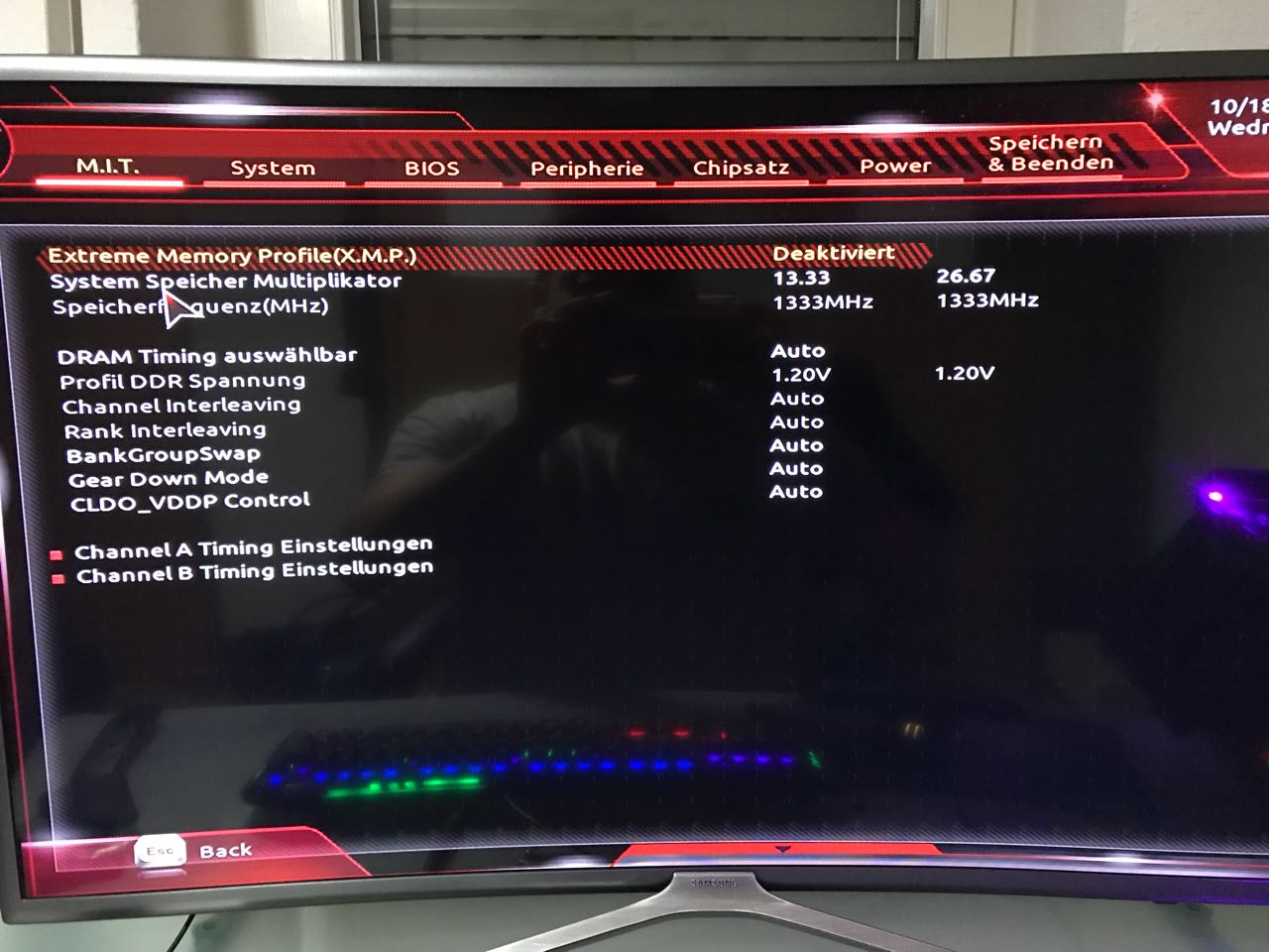AAAHHHHHH ! Ich sehe Deinen Fehler direkt ! "EXTREM MEMORY PROFILE (XMP) DEAKTIVIERT", das musst Du logischerweise aktivieren und dort dann auf 2666 stellen.