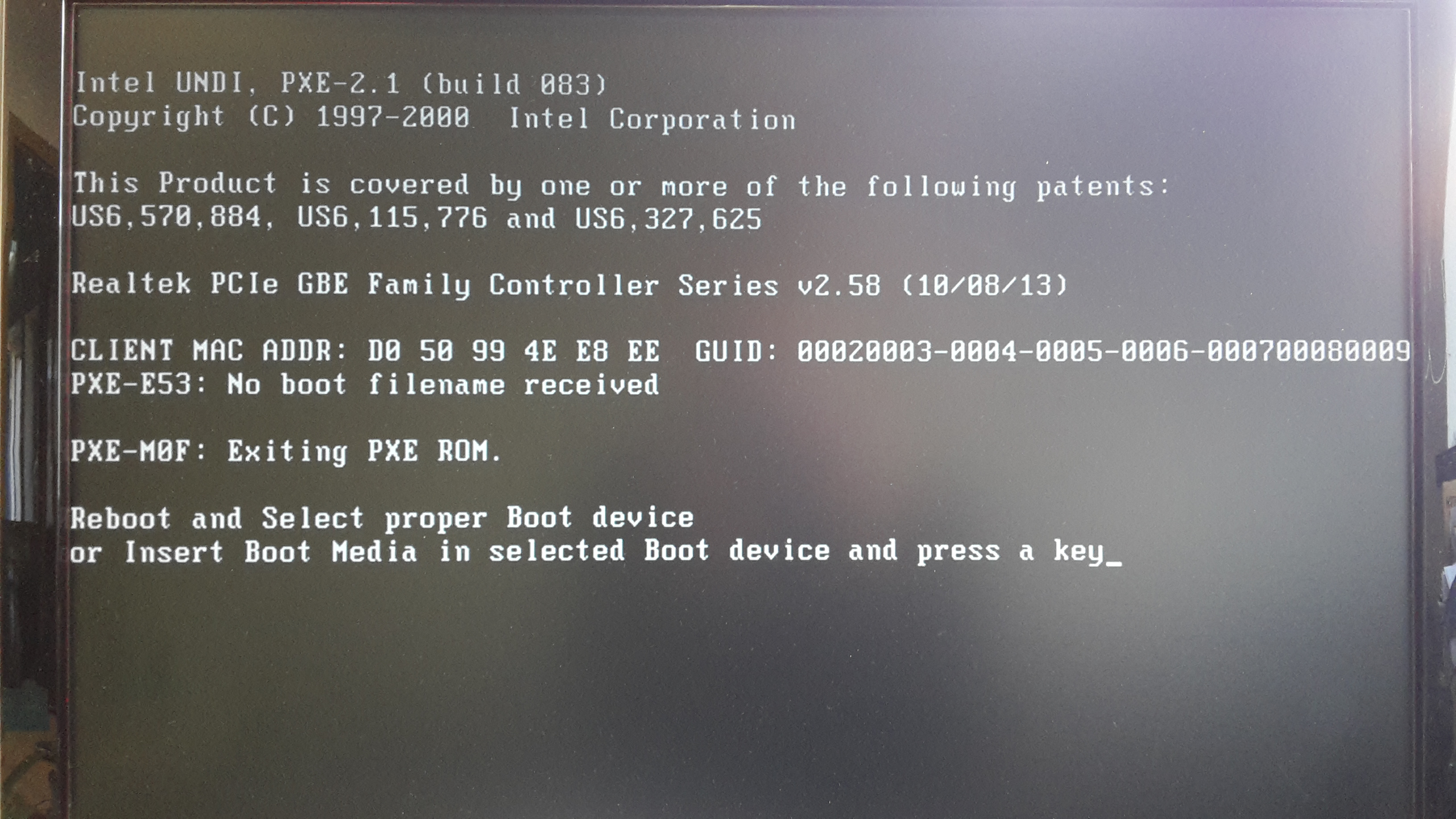 Ich hatte die Vermutung dass irgendwas mit der Ob-Board-LAN-Karte nicht funktioniert. Habe diese im BIOS deaktiviert und der PC startete ganz normal, nur ohne Internet/LAN. Habe eine Datensicherung gemacht und dann das BIOS auf "Ursprung" reseted und wollte schauen ob der PC ohne LAN-Kabel startet, nur leider startet der PC nun überhaupt nicht mehr und folgendes Bild kommt: