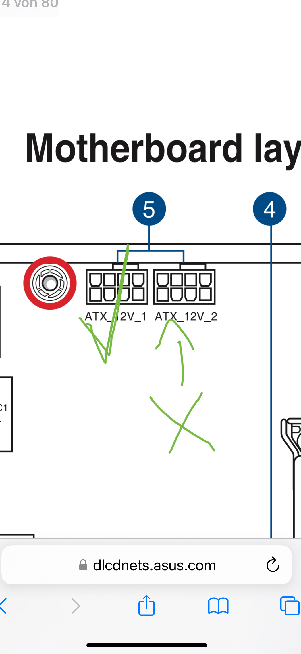 Der pc ist nicht bei mir grade aufjedenfall hab ich von der Anleitung ein bild wo das vielleicht helfen könnte unzwar habe ich da auf der Anleitung die Cpu Stromversorgung und davon kommte ich nur eine belegen unzwar 8 pin und den zweiten 8 pin nicht (Rechts auf dem bild) da mir der Stecker fehlt da es mein Netzteil nicht verfügt bräuchte ich ein neues Netzteil das die kiste anspringt oder kann es an sowas nicht liegen