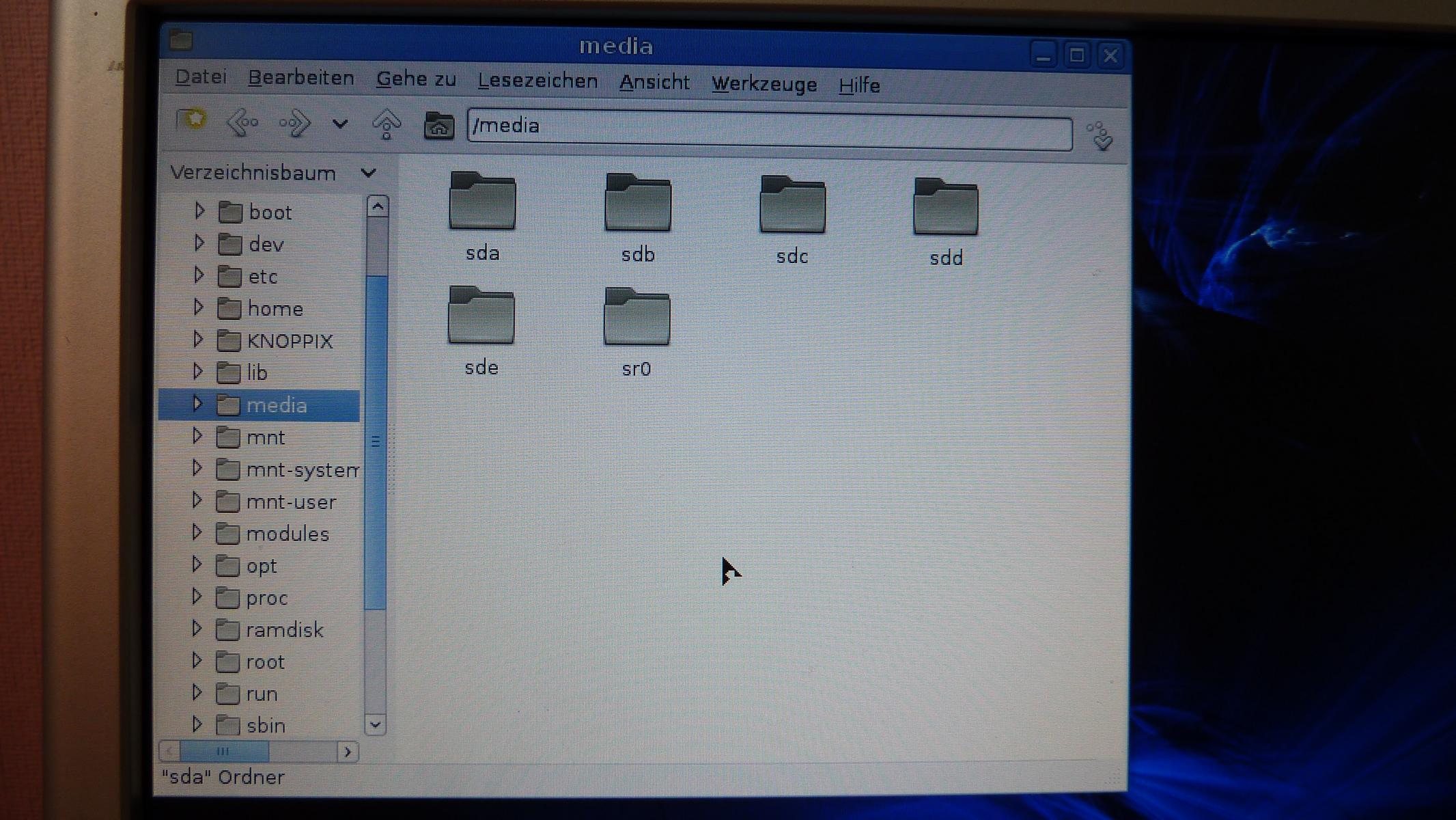 Die mit sda, sdb usw. bezeichneten Geräte sind die Festplatten und USB-Laufwerke, also Cardreader usw.