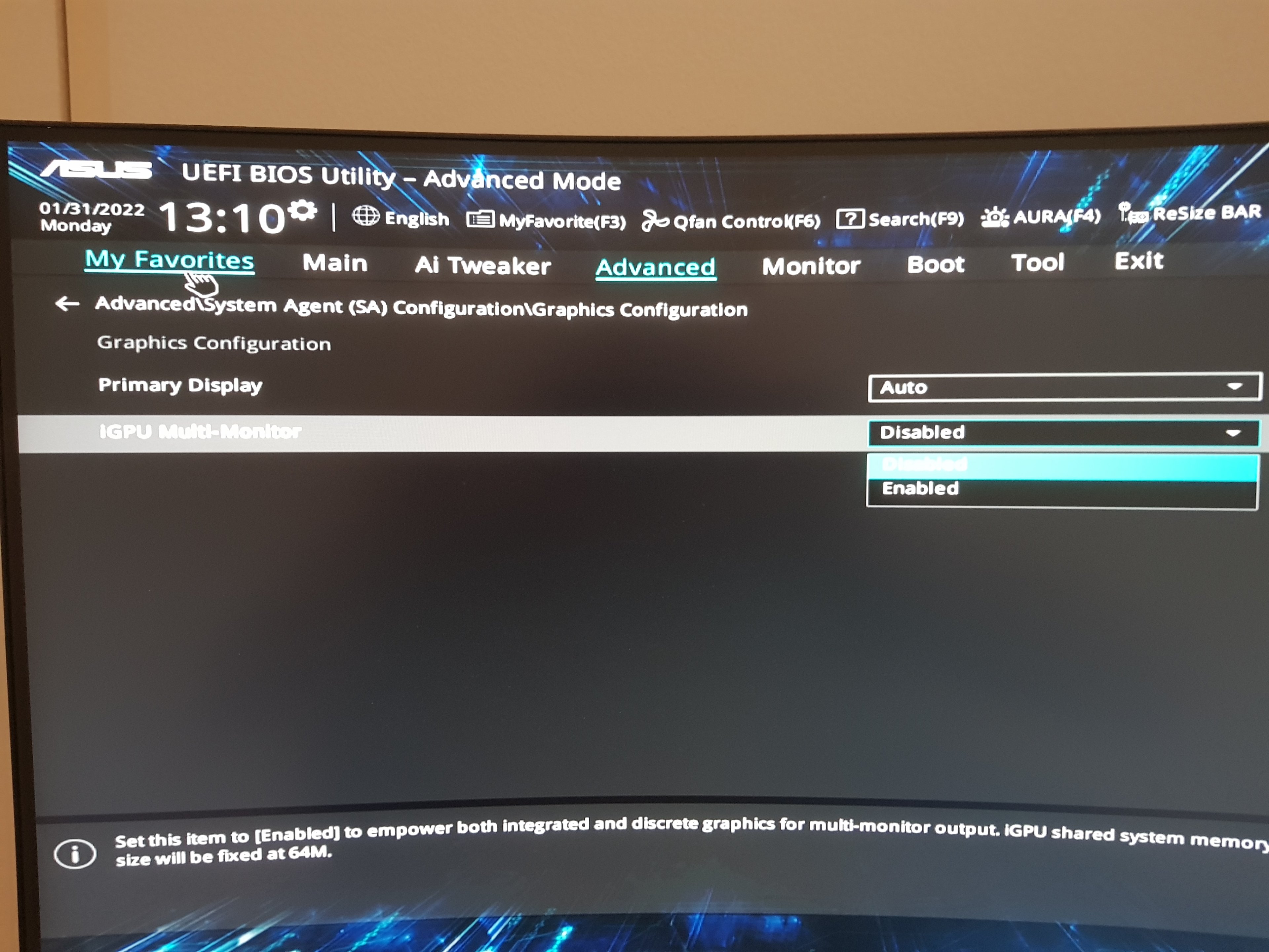 BIOS-Optionen hinsichtlich der IGP.