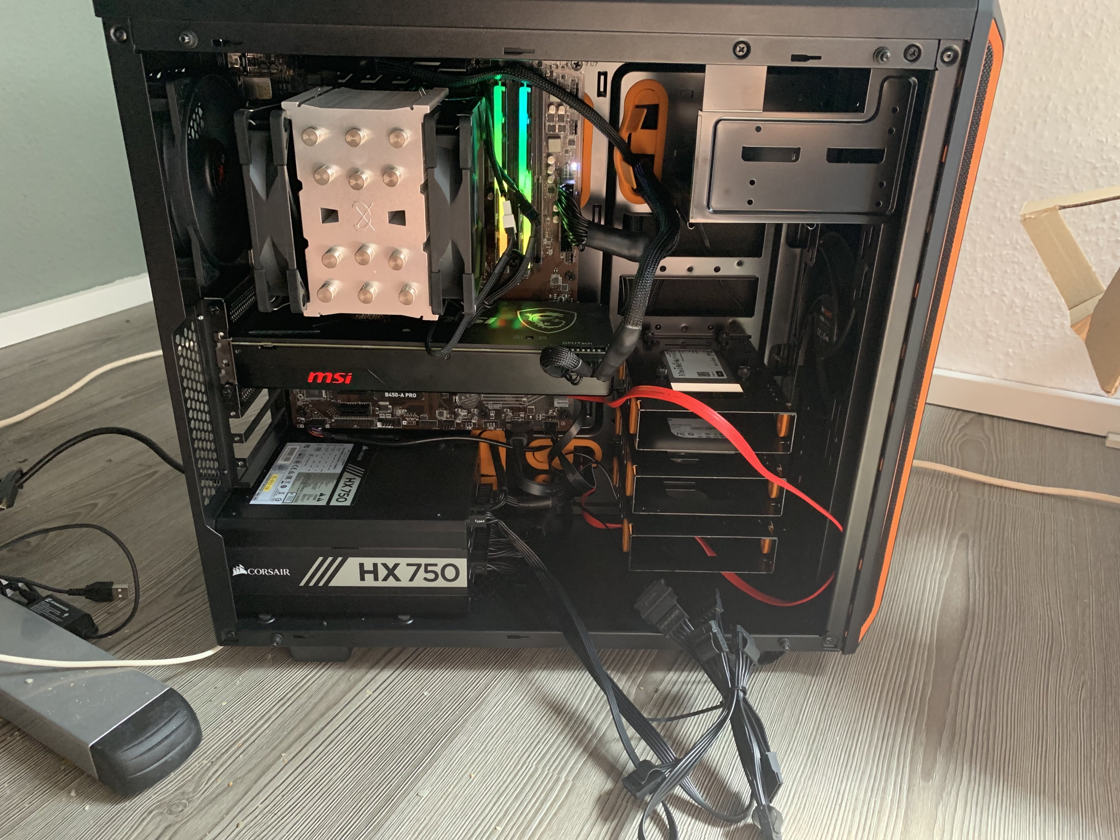 Direkt aufgefallen ist mir, dass ich kein Pipton vom Mainboard aus gehört habe. Desweiteren sieht man auch auf den Fotos das die Grafikkarte an sich Strom hat, was man aber nicht sieht ist das der Lüfter der Graka nicht geht(Graka ist nicht neu und funktionierte erst gestern Abend noch).