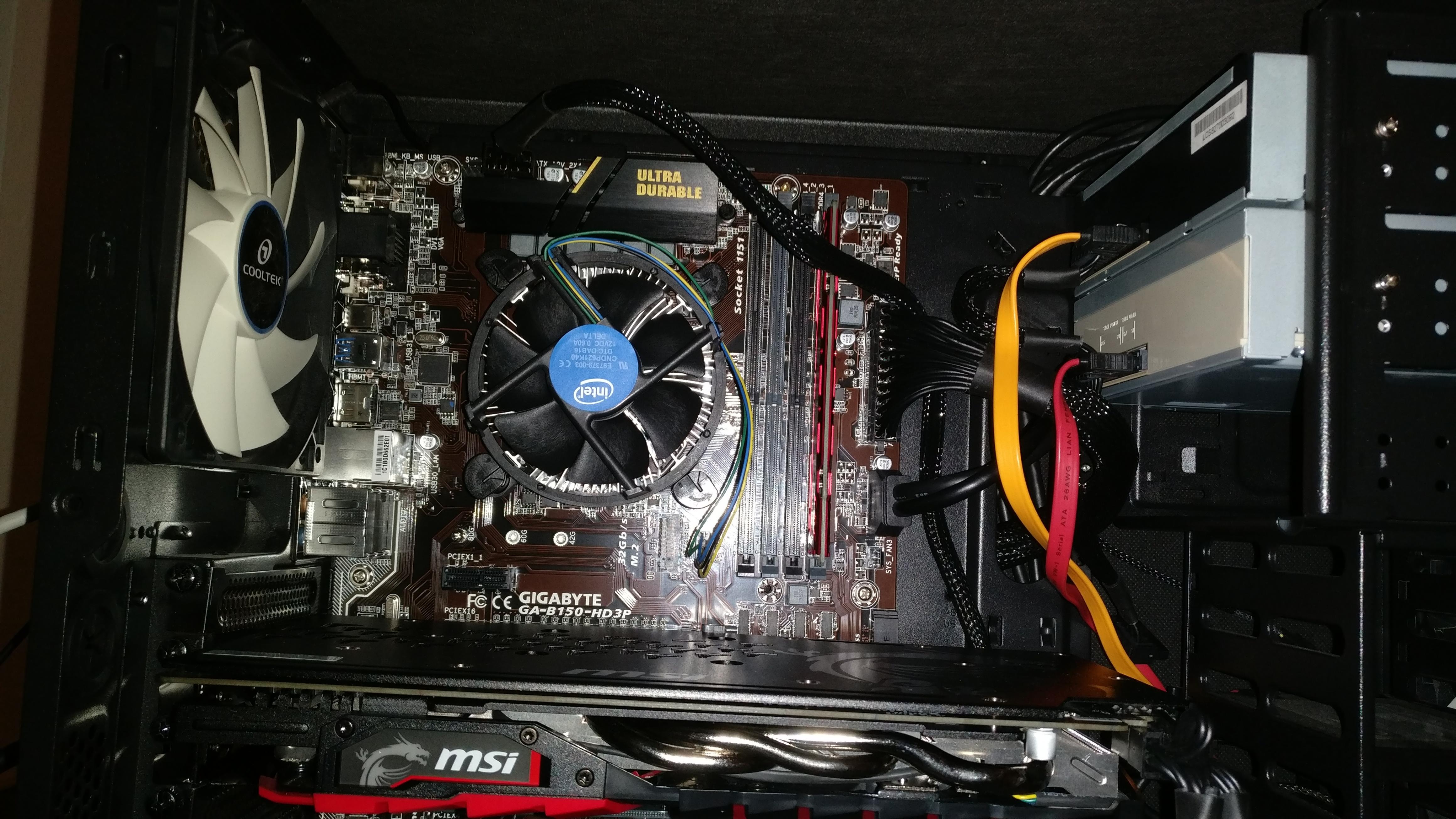 Neue Grafikkarte (gtx1060), neuer Prozessor (i56600), 2* 8gb ddr4, Gigabyte ga-bi150-hd3p und Netzteil. Der PC ist das erste Mal gestartet, ich habe Gigabyte Treiber und msi Treiber von der CD installieren können, seit dem Neustart danach schafft er es nicht mehr auf den Desktop und wenn, dann kann ich nichts auswählen/starten.
