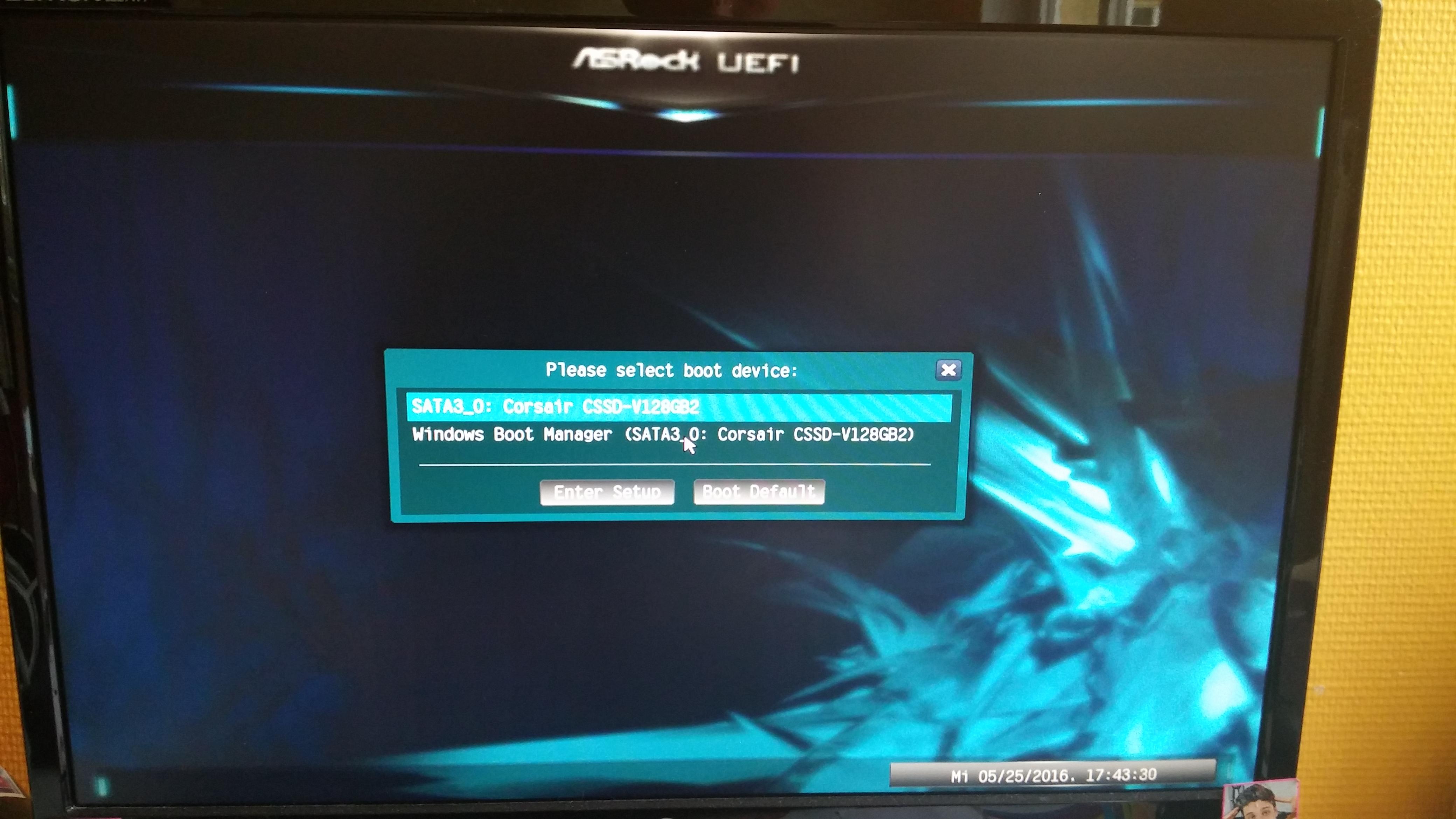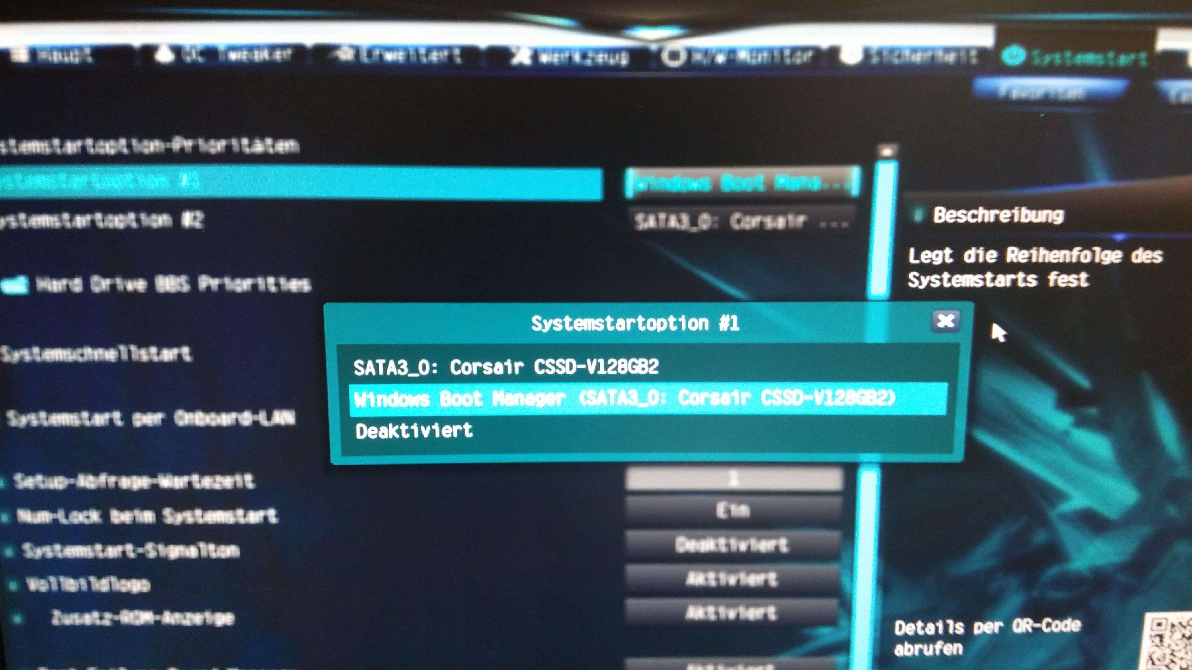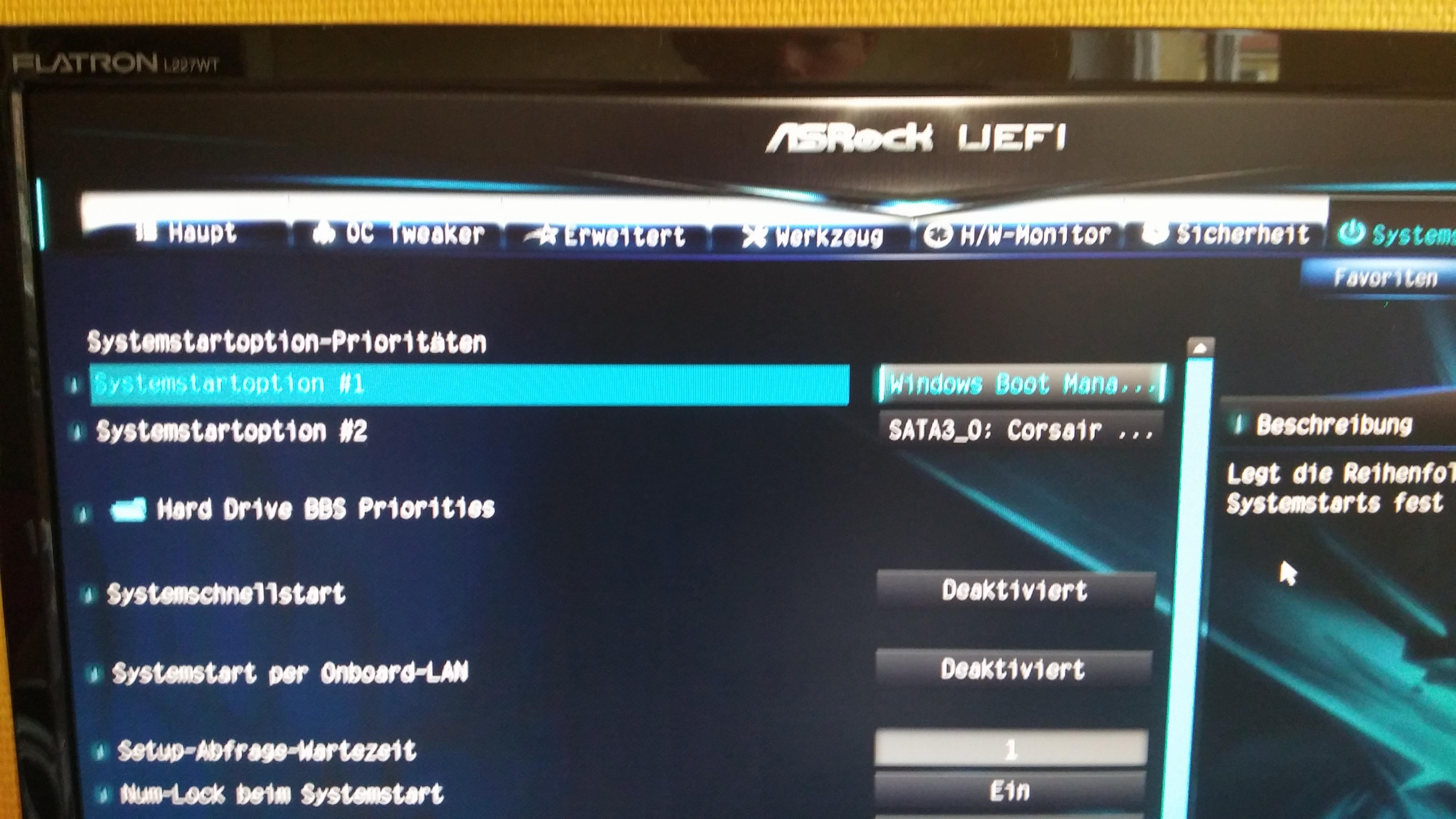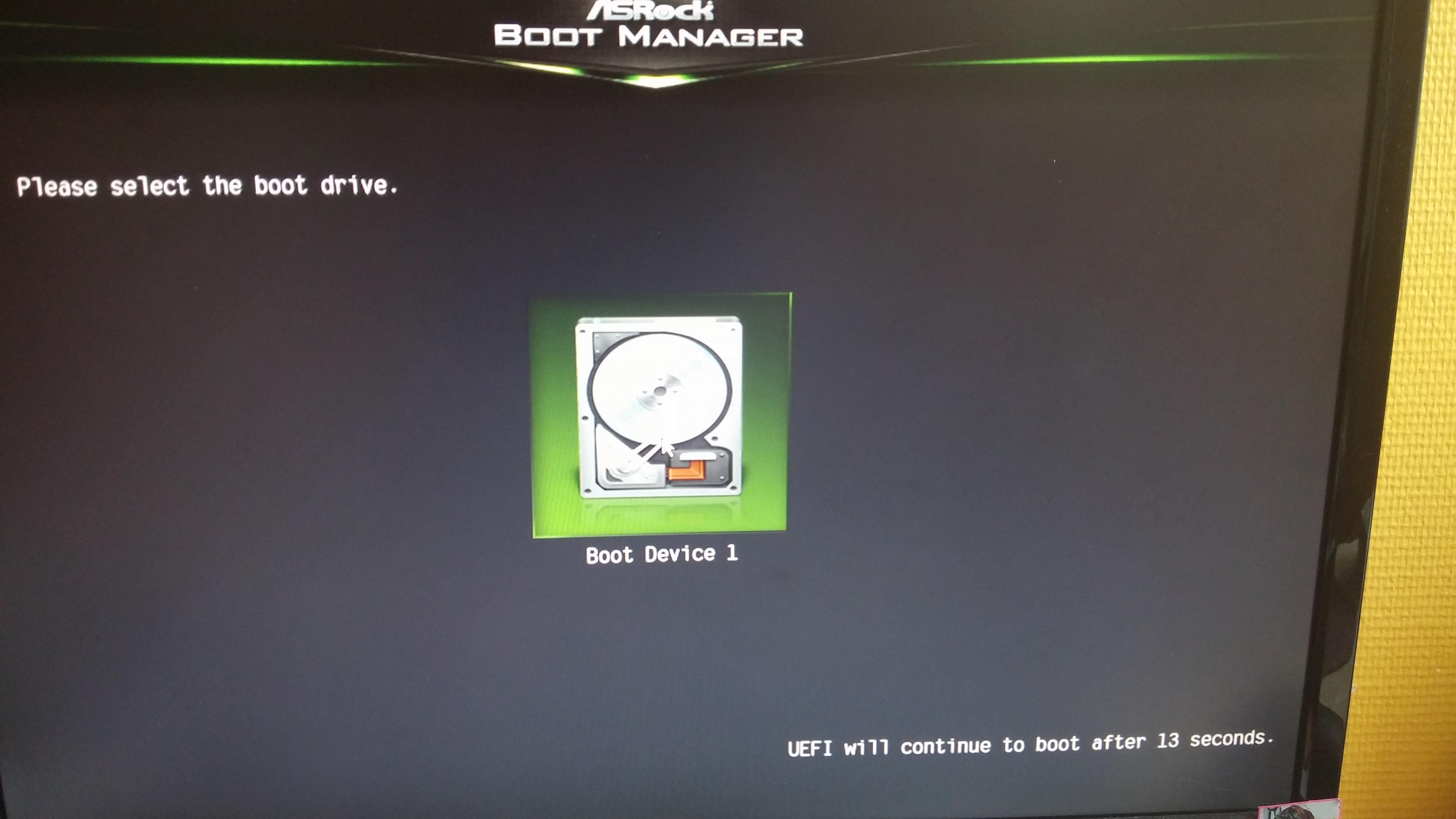 Wenn ich im UEFI einstelle, das er automatisch vom "Windows Boot Manager" starten soll startet er ins "Asrock Boot Manager" und dort steht "Boot Device 1".