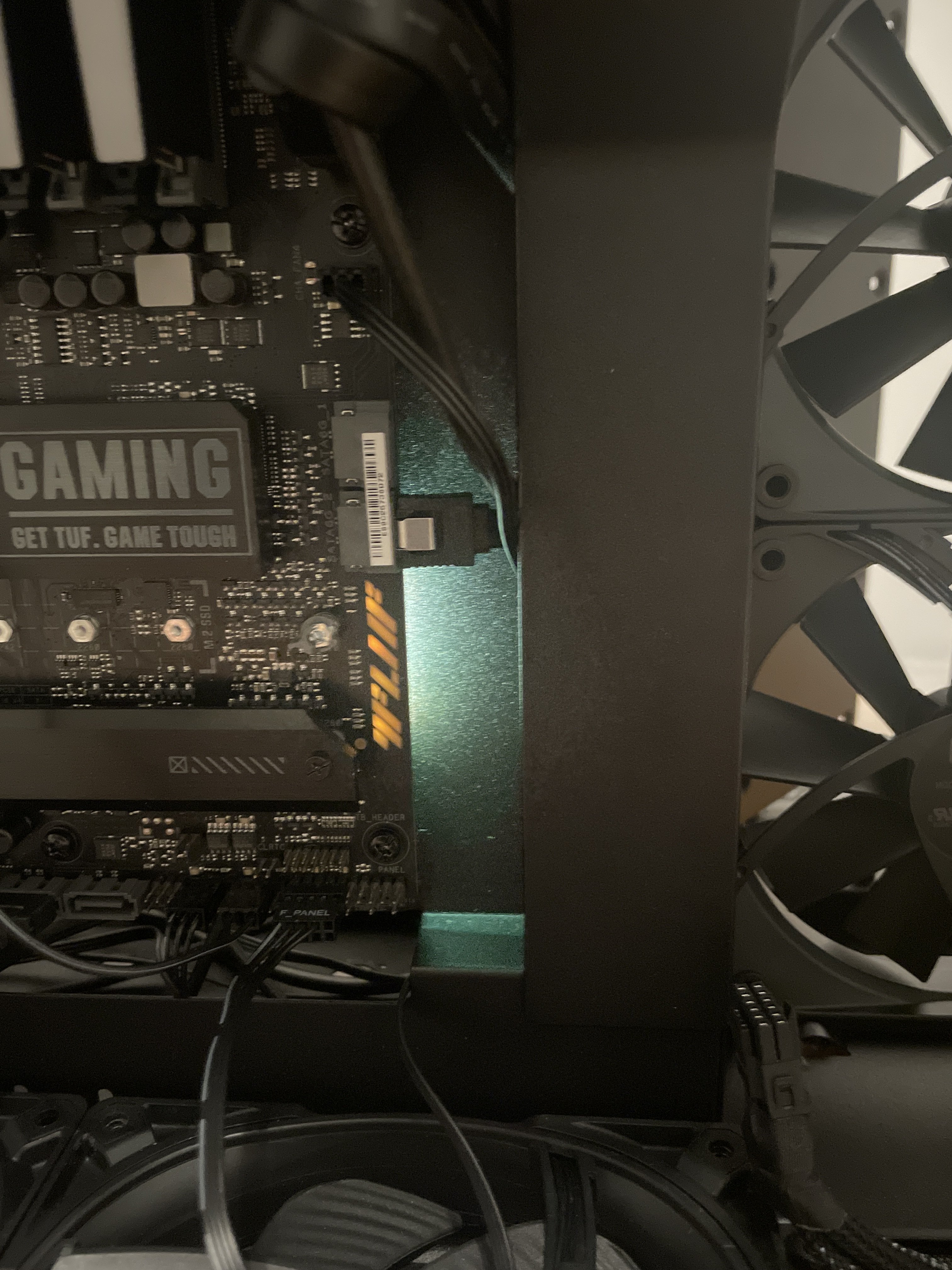 2. Problem: sobald ich das Stromkabel ins Netzteil stecke fängt das MB an gelb zu blinken, aber es blinkt indirekt ( hinter dem MB selber)