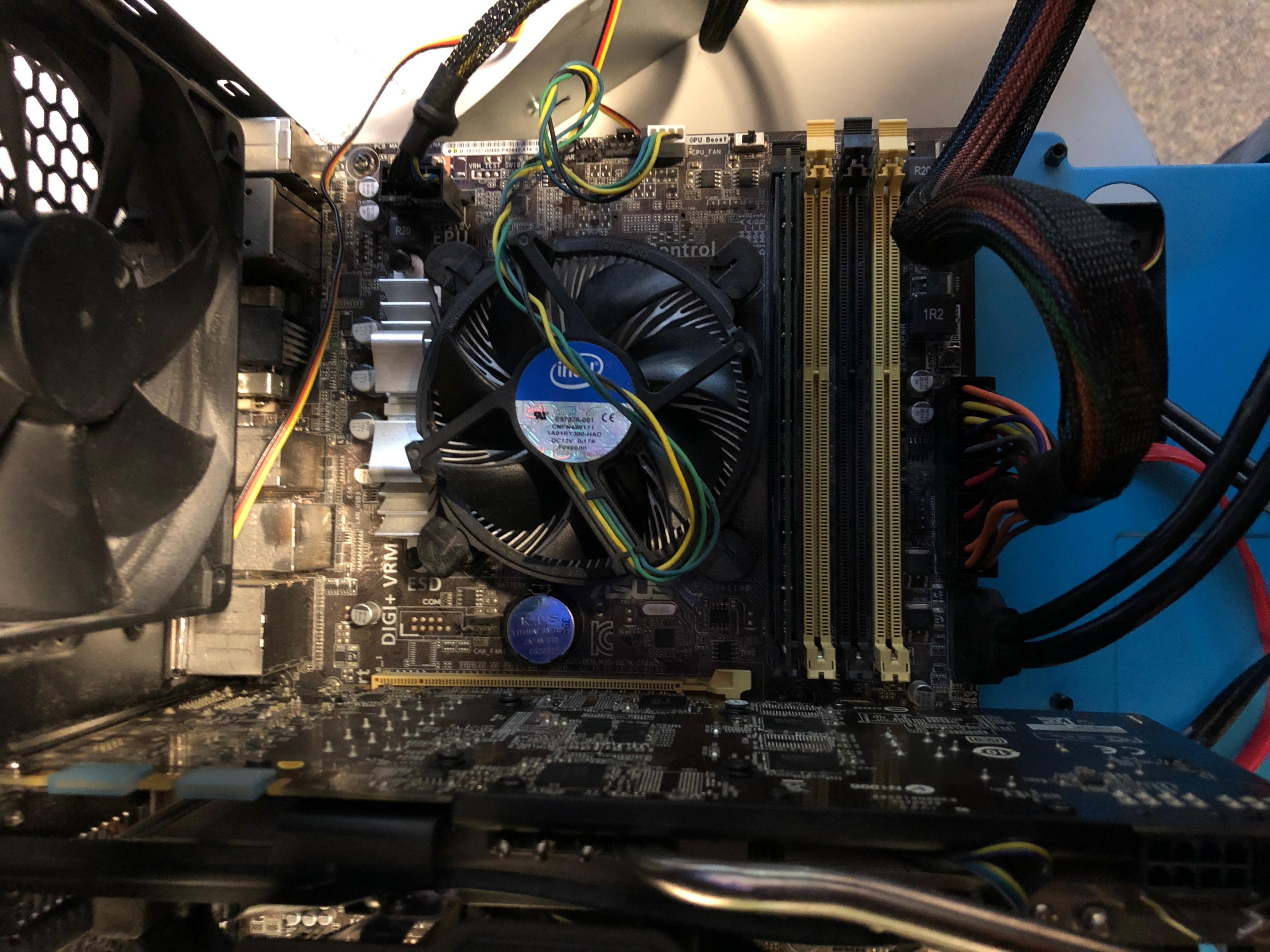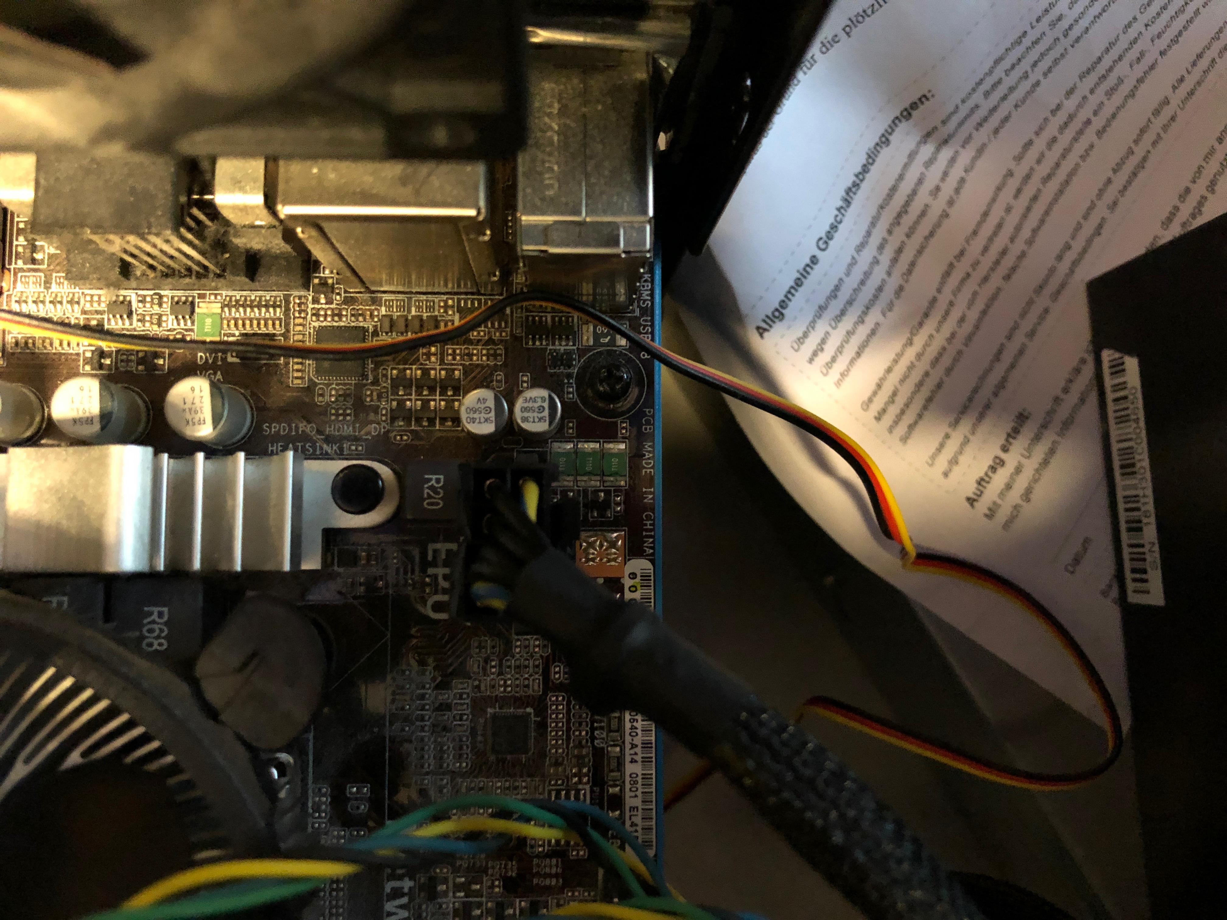 mein PC startet leider nicht mehr. Ich habe alle Anschlüsse am Mainbord getestet und nichts passiert. Ich habe ein Ersatz Netzteil angeschlossen. Derzeit ist nur der 24 Pin und der 8 Pin Stecker eingesteckt und ein RAM Riegel. Wenn ich die Pins überbrücken will passiert nichts. Weder der CPU Lüfter noch der Lüfter des Netzteil läuft. Und die Günelampe vom Mainbord leuchtet.Auch wenn ich die Pins nicht überbrücken (wollte ausschließlich das es am Knopf liegt) passiert nichts.