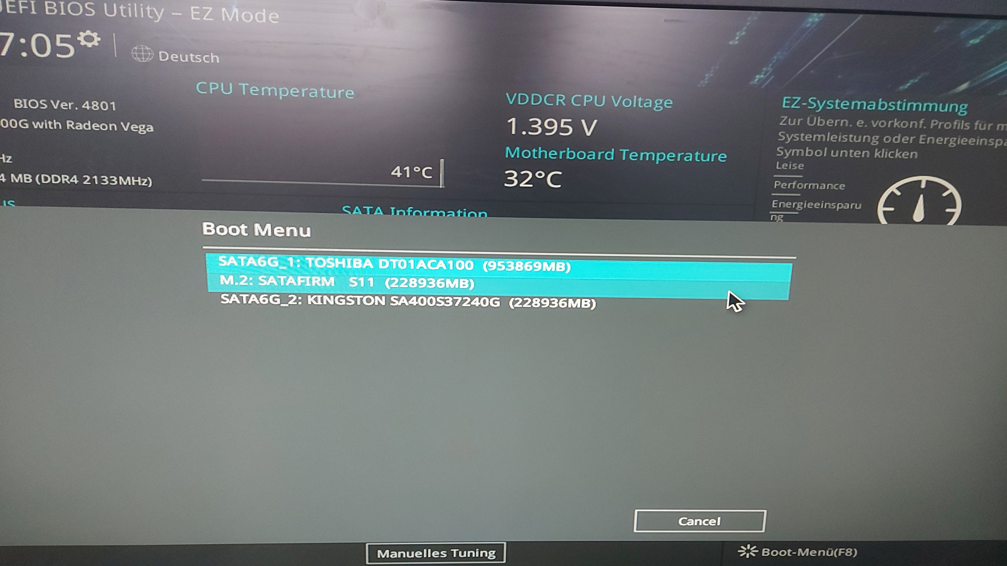 Ich habe die SSDs in anderen PCs ausprobiert (neue mit UEFI und alte mit BIOS), aber in allen PCs wird die SSD als "SATAFIRM S11" im BIOS angezeigt.