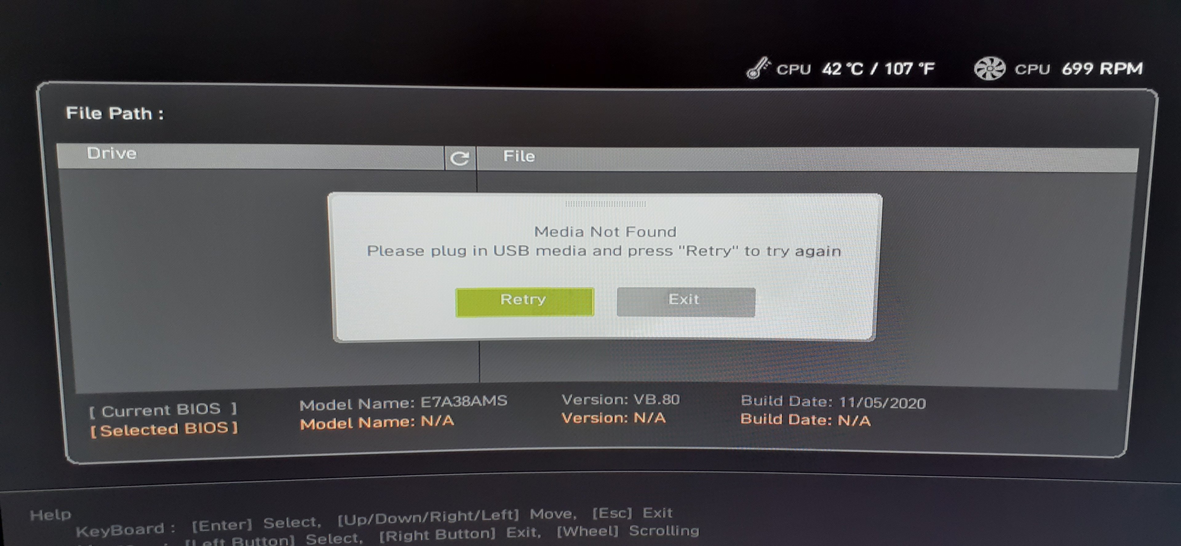 Please plug in USB media and press" Retry" to try again.