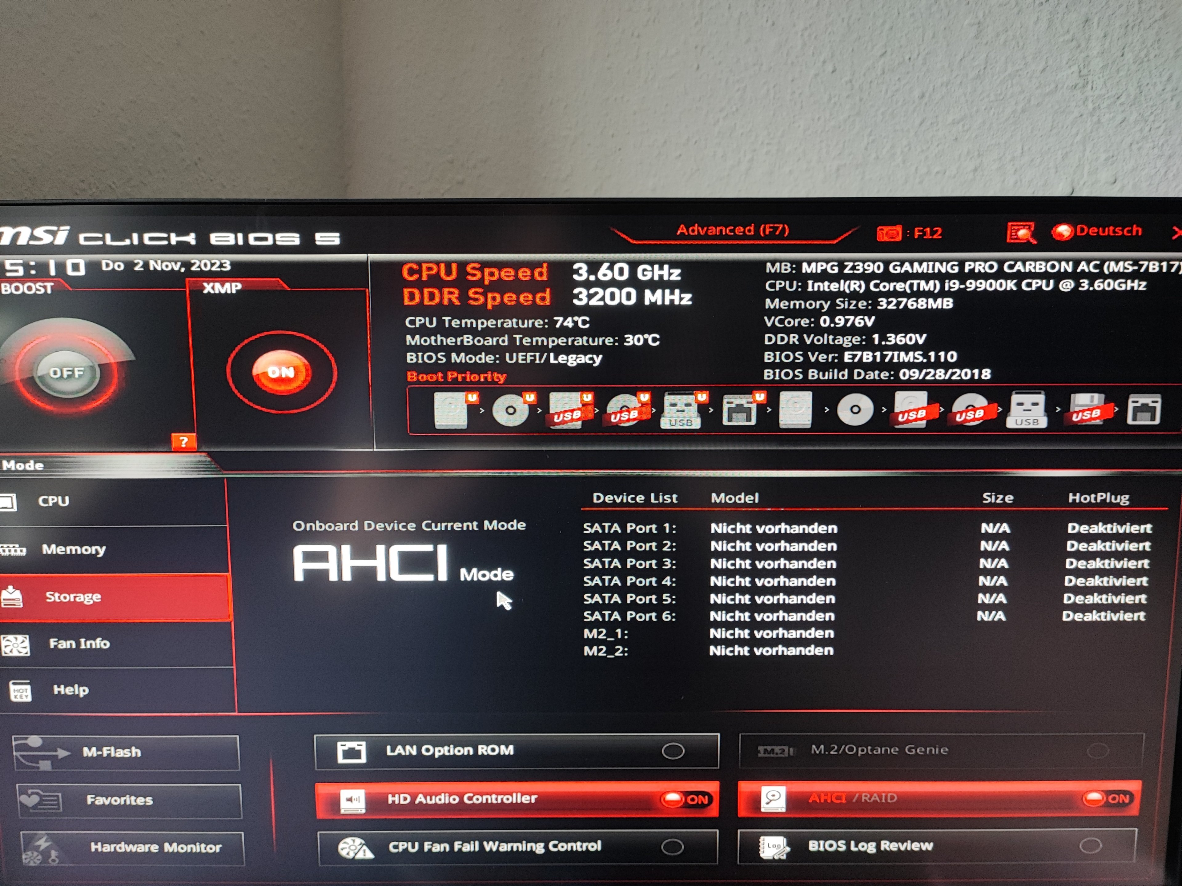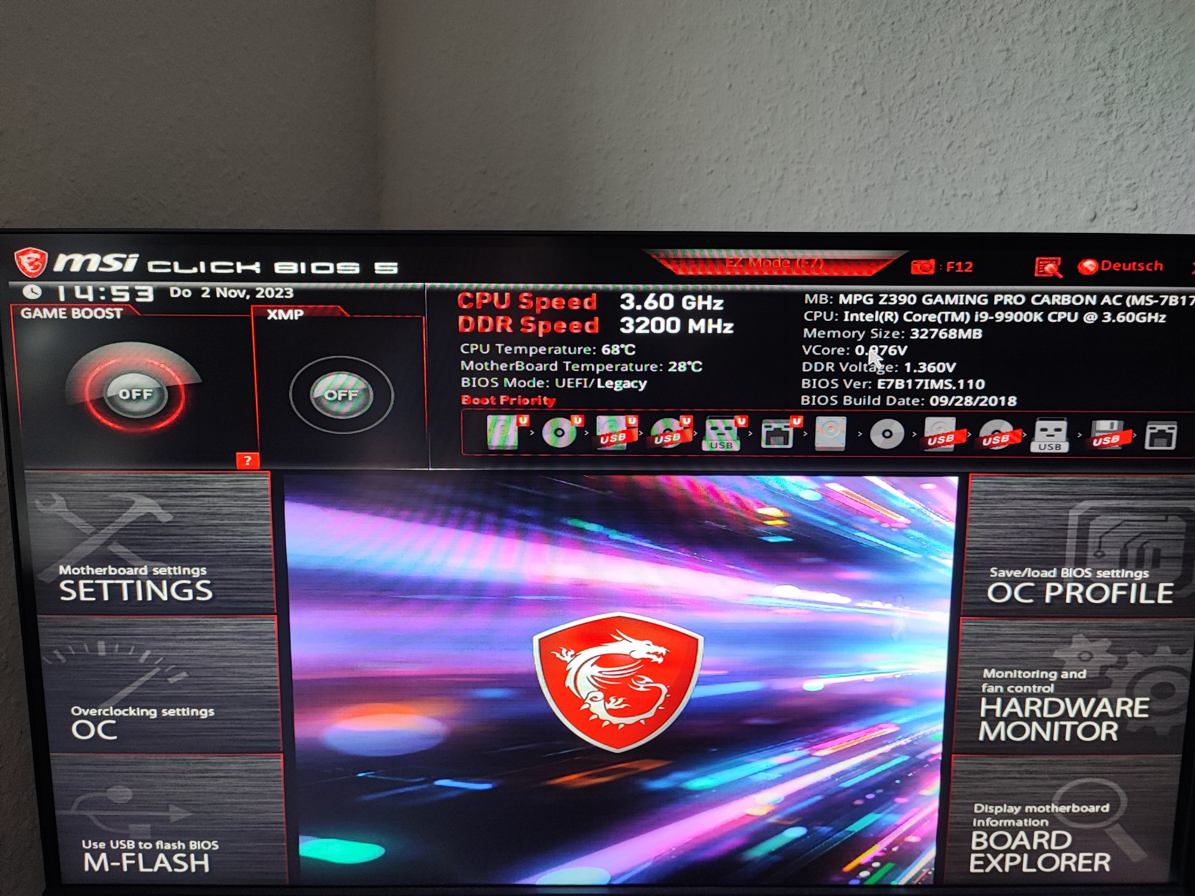 Seit gestern startet der PC nur noch ins MSI Bios. Ich war vorher noch nie in diesem Menü.