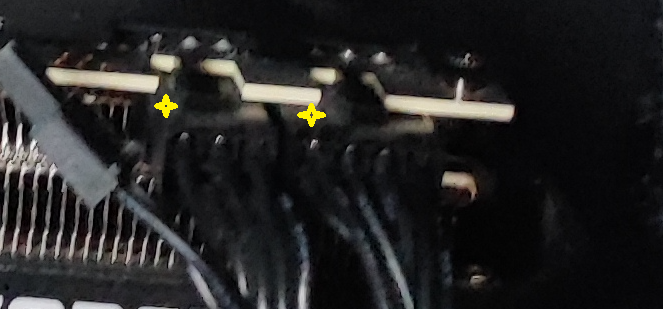 Man beachte den Abstand zwischen Kabelklemme und Grafikkarte, der links größer ist als rechts.