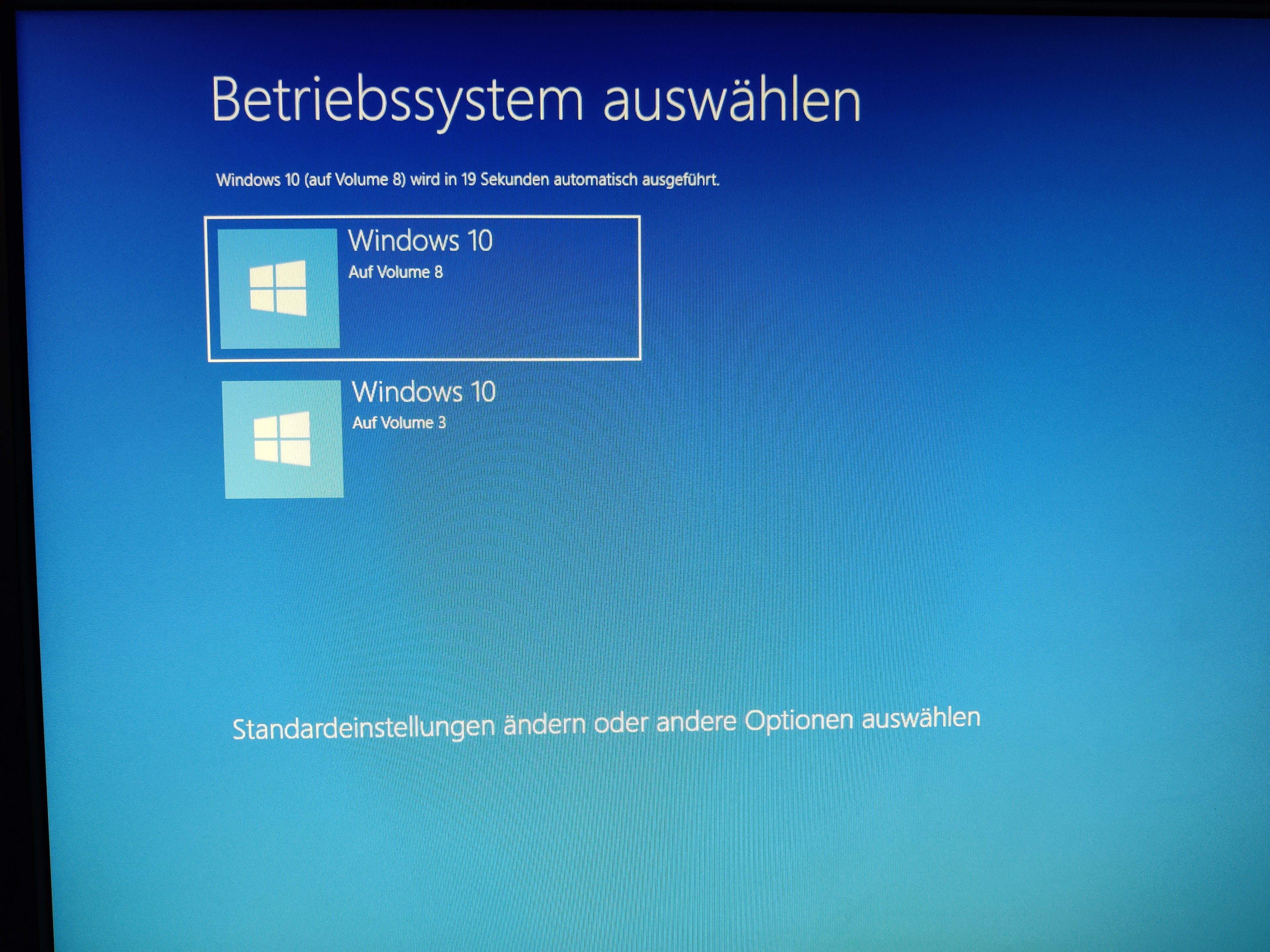 Zudem fragt der Windows Boot Manager dann welches Volume ich starten möchte. Zur Info: Das Volume 3 war mal auf der 850 EVO SSD wurde aber bereits formatiert (Bild 4).