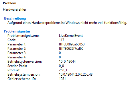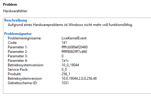 Eine Fehlermeldung und/oder Bluescreen gibt es nicht.