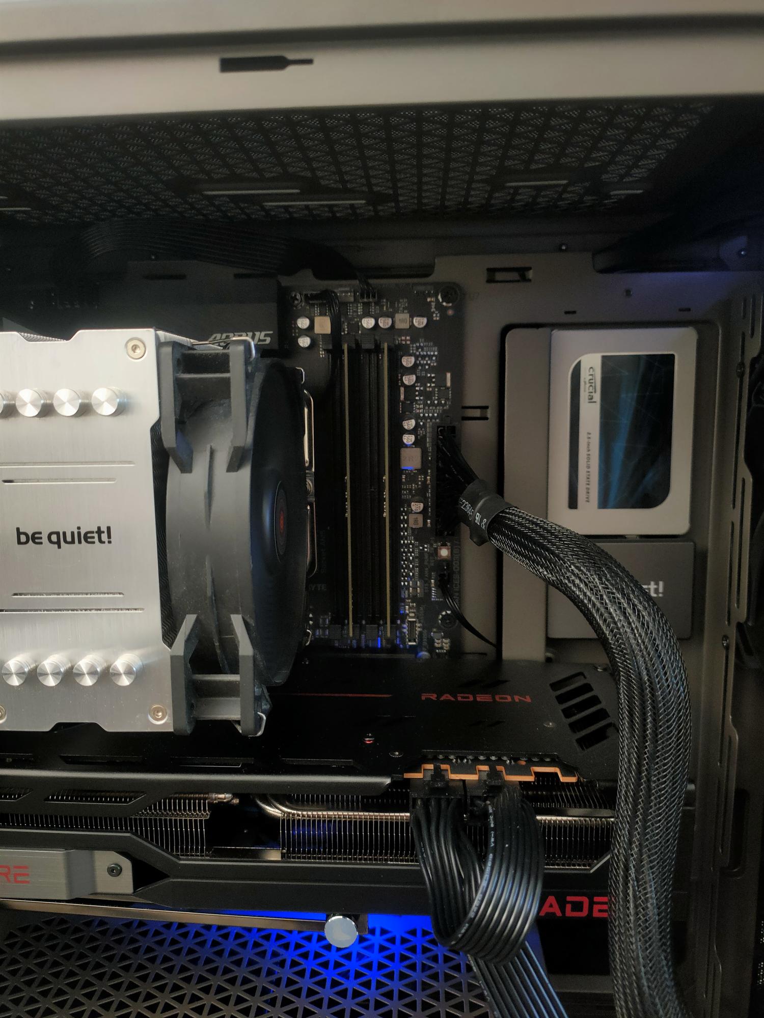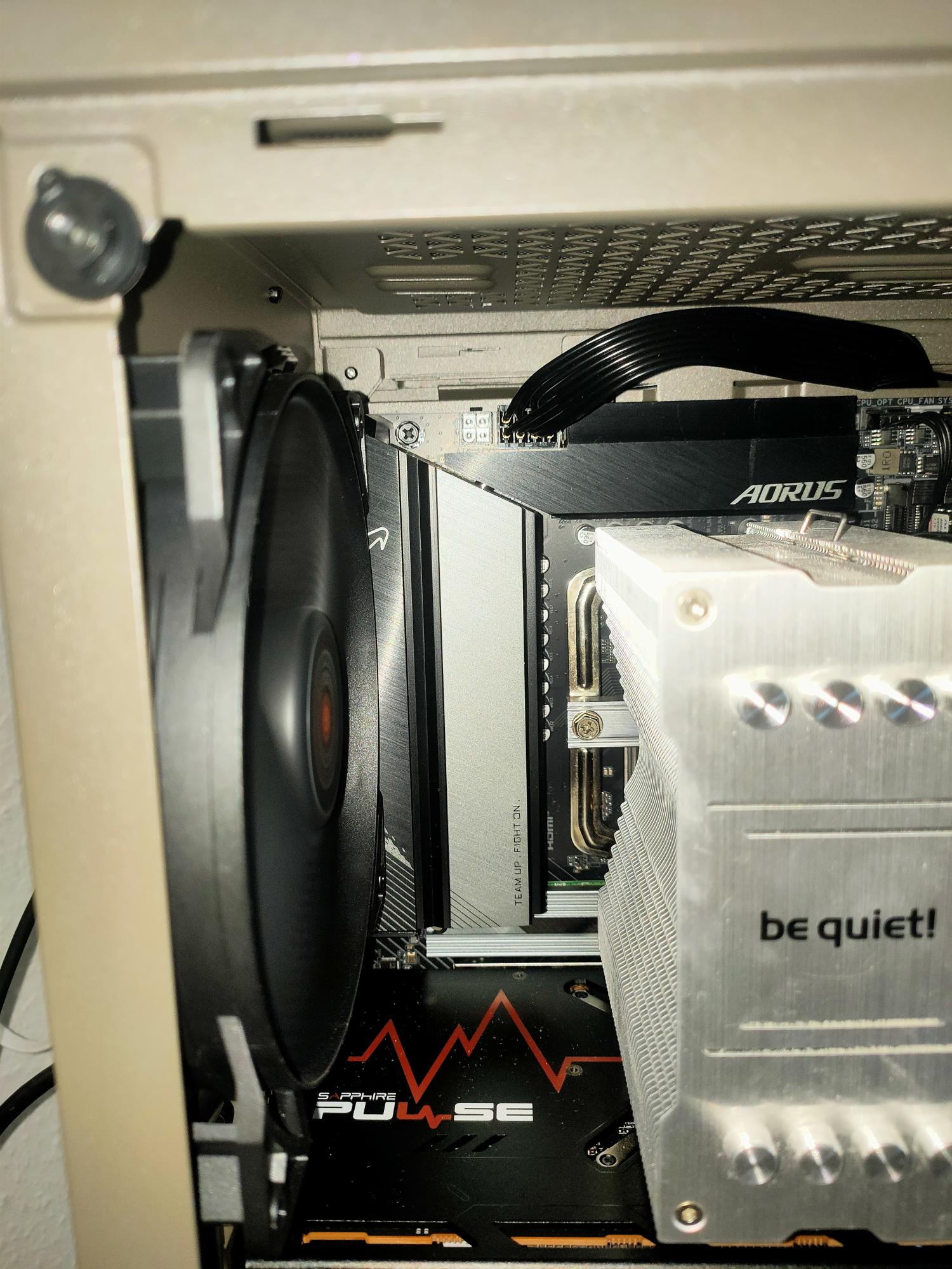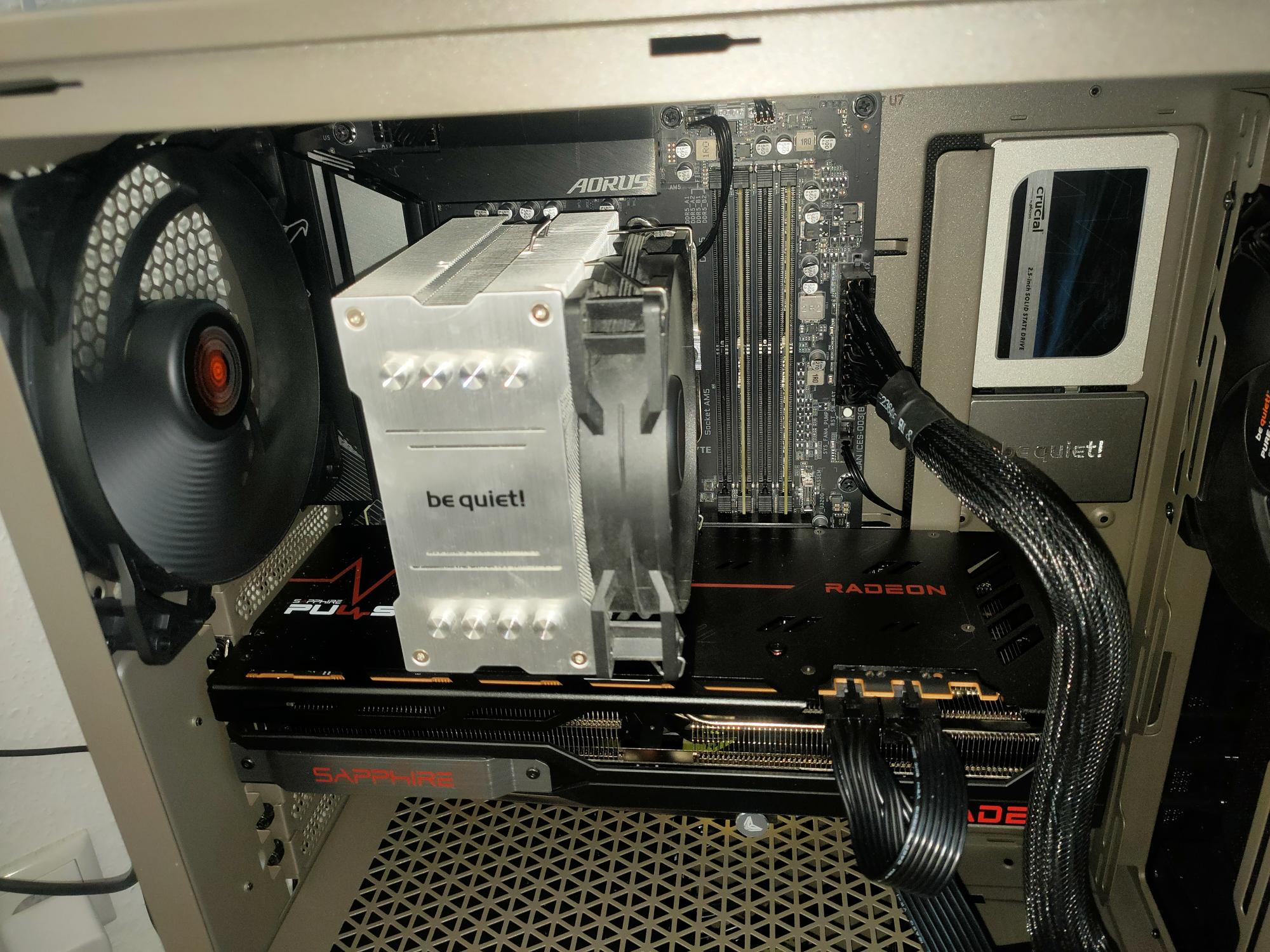 - CPU-Kühler: im moment noch den be quiet Pure Rock2 (vom alten Rechner übernommen), der wird die tage durch den Dark Rock Pro 5 ersetzt und be quiet Geäuselüfter kommen noch paar dazu, momentan nur zwei verbaut