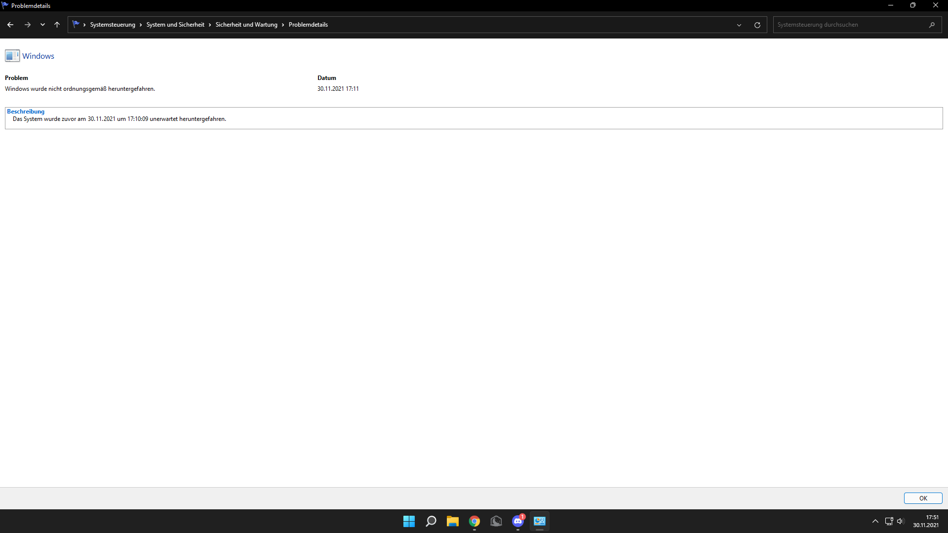 Aufgrund eines Hardwareproblems ist Windows nicht mehr voll funktionsfähig.