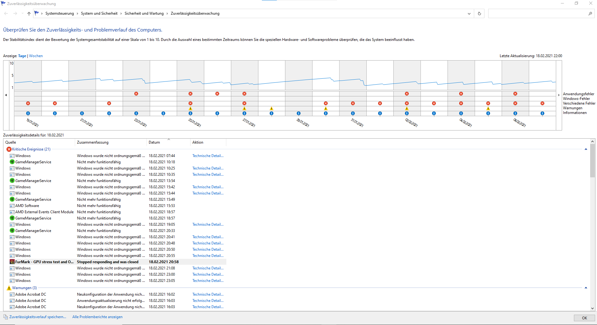 was brauchst du genau davon ? also was soll ich schickenmadmax2010 schrieb:Das Programm zuverlaessigkeitsverlauf findest du, indem du im startmenu nach Zuverlaessigkeitsverlauf suchst