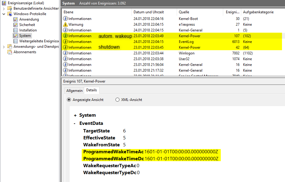 Ich habe seit langer Zeit ein Problem mit meinem Pc... Er schaltet sich nämlich immer genau 24h nachdem ich ihn ausgeschaltet habe wieder ein. Ich hab ein MSI Z97 Gaming 3 und ein Be quiet Pure Power 630 weiters einen Intel i7 4790k, GTX 1080, 16GB Corsair Ram, in einem Corsair Carbide 540. Ich habe Windows (10) bereits neu installiert und die Bios Einstellungen schon auf Standardwerte zurückgesetzt. Er wurde im Dezember komplett zerlegt und mit der neuen Graka und Gehäuse wieder zusammengebaut. Das mit dem selbst starten war vorher schon und passiert immer noch. Habt ihr noch einen Tipp was ich versuchen könnte?