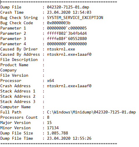Guten Tag, mein Pc stürzt nun seit langen immer wieder ab und jetzt reicht es mir , ich will das Problem endlich finden da man den Pc so nicht ordentlich nutzen kann. In unterschiedlichen Zeitabständen stürtzt mein PC einfach so ab und oftmals sind es unterschiedliche Bluescreencodes. Ich habe eigentlich schon alle Treiber aktualisiert also daran sollte es nicht liegen. Hier sind die dumps von Bluescreenviewer. Hoffe ihr könnt mir helfen