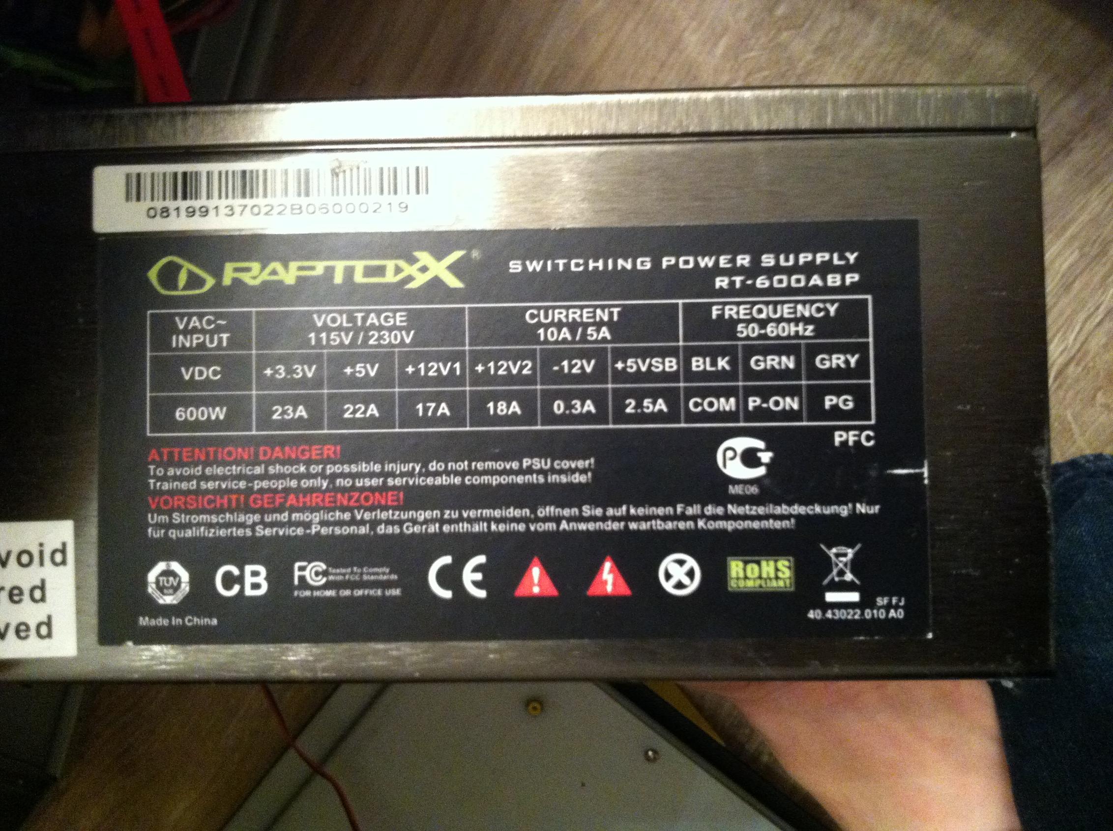 abend so zum raptoxx nt ist nur zu sagen es ist ein grosser chinaböller und am besten garnicht mehr anschliessen es ist einfach der grösste dreck was es gibt, hier der test zum raptoxx dreck http://www.technic3d.com/review/netzteile/180-raptoxx-rt-450-2.0/3.htm