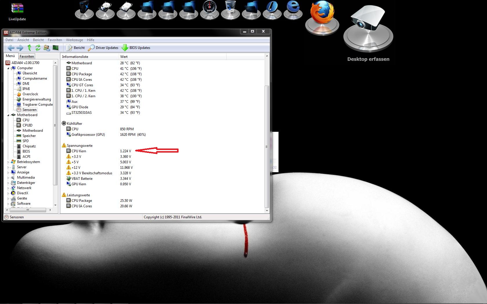 Haste ja alles richtig erklärt - bei Hardware - zumindest CPU / VCore / RAMs - liest man die Werte besser im BIOS aus - hier kommt der Energiesparmodus nicht zum tragen - daher stimmen diese annähernd -