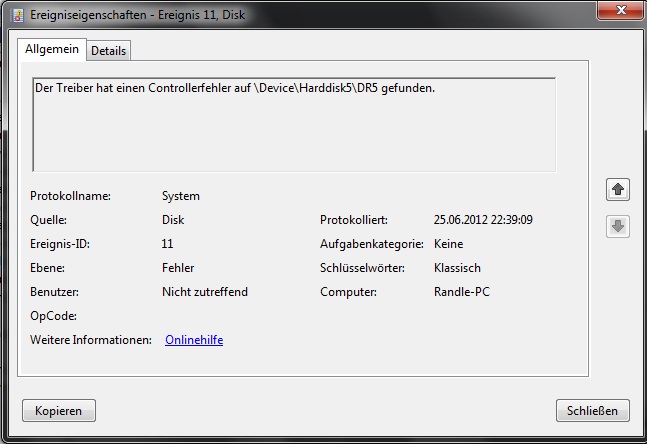 @yxcv dabei kamen mir 3 fehler sehr verdächtig vor die anderen waren nur das windows nicht ordnungsgemäß runtergefahren wurde