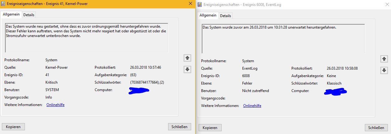 mein Pc stürzt ab bei ganz wenigen Spielen wie z.B. Stalker Shadow of Chernobyl oder jetzt auch Rollercoaster Tycoon World und ich hab keine Ahnung wieso. In diesen beiden Spielen schmiert der PC einfach komplett ab, er schaltet sich ganz plötzlich ohne Vorwarnung aus und ab und zu auch sofort, bei RCTW sogar schon im Menü und die grüne LED am Gehäuse blinkt. Jetzt kann ich ihn nur noch vom Strom nehmen und muss neustarten und es nervt extrem. Die beiden Spiele sind eigentlich nicht allzu anspruchsvoll technisch gesehen ... Witcher 3, Battlefield 3, Watch Dogs 2 etc udn so ziemlich alles eigentlich läuft ohne Probleme. An was liegt denn das? An der Hardware kann es doch nicht liegen wenn das bei Witcher 3 oder Watch Dogs 2 und generell sonst nie vorkommt? Graka Treiber sind aktuell, AMD FX 8350, R9 280X, 8 GB RAM, WIN 10