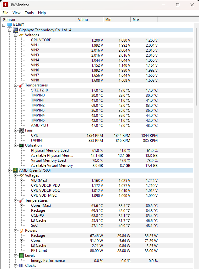 - Mainboard: GIGABYTE A620M GAMING X