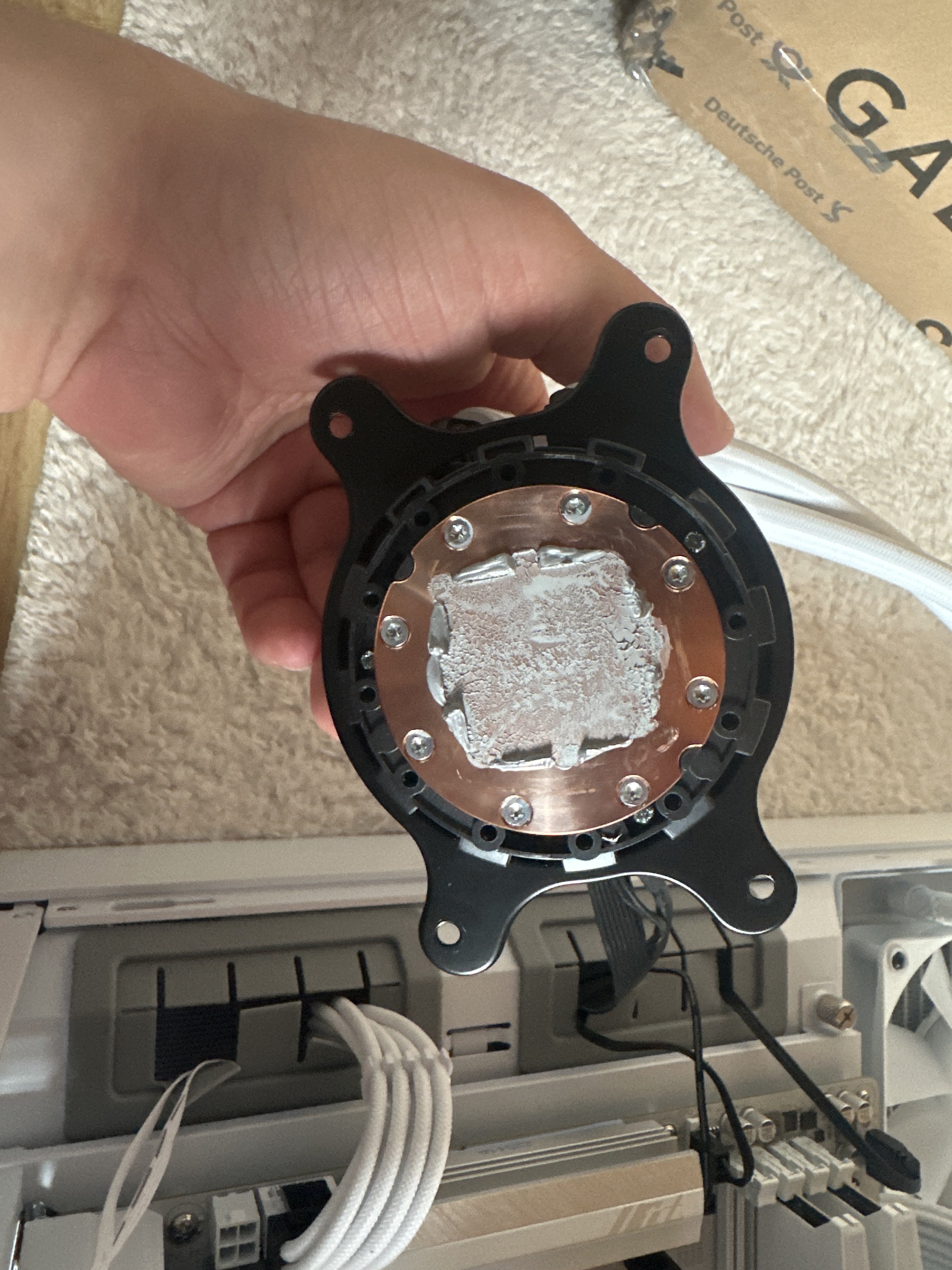 Ich hab jetzt noch mal den Kühler(AIO) abgebaut und neue Wärmeleitpaste dran gemacht und noch mal schön dran gemacht, wie im Handbuch des Mainboards beschrieben.
