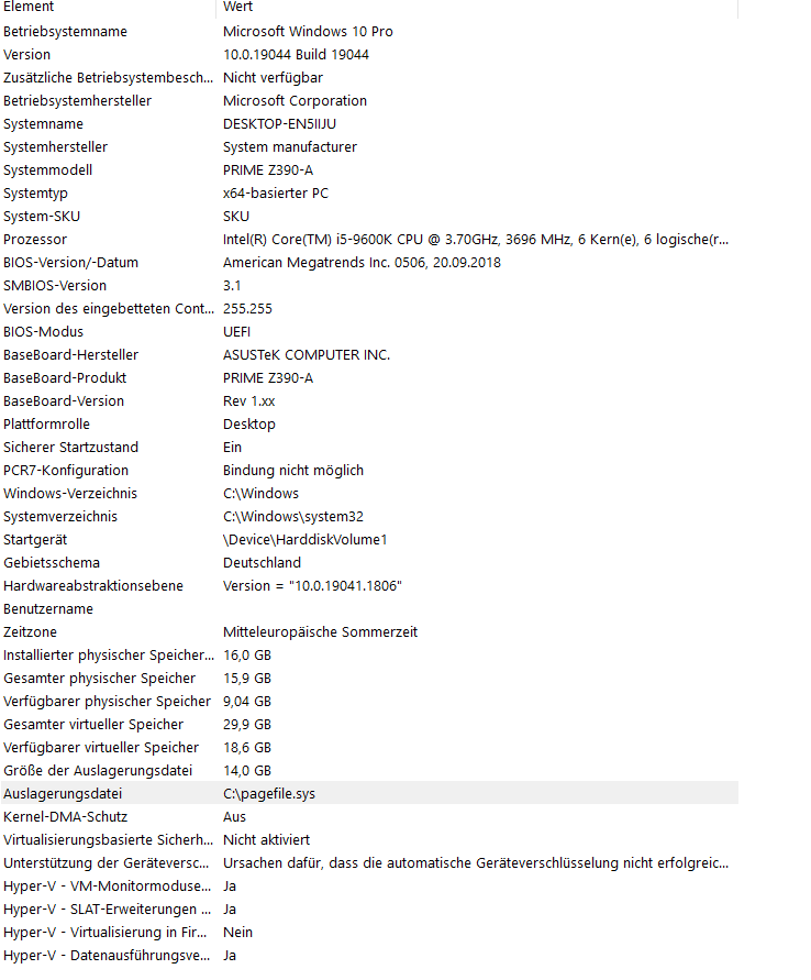 Hardware poste ich ebenso ein Bild aus Systeminformation