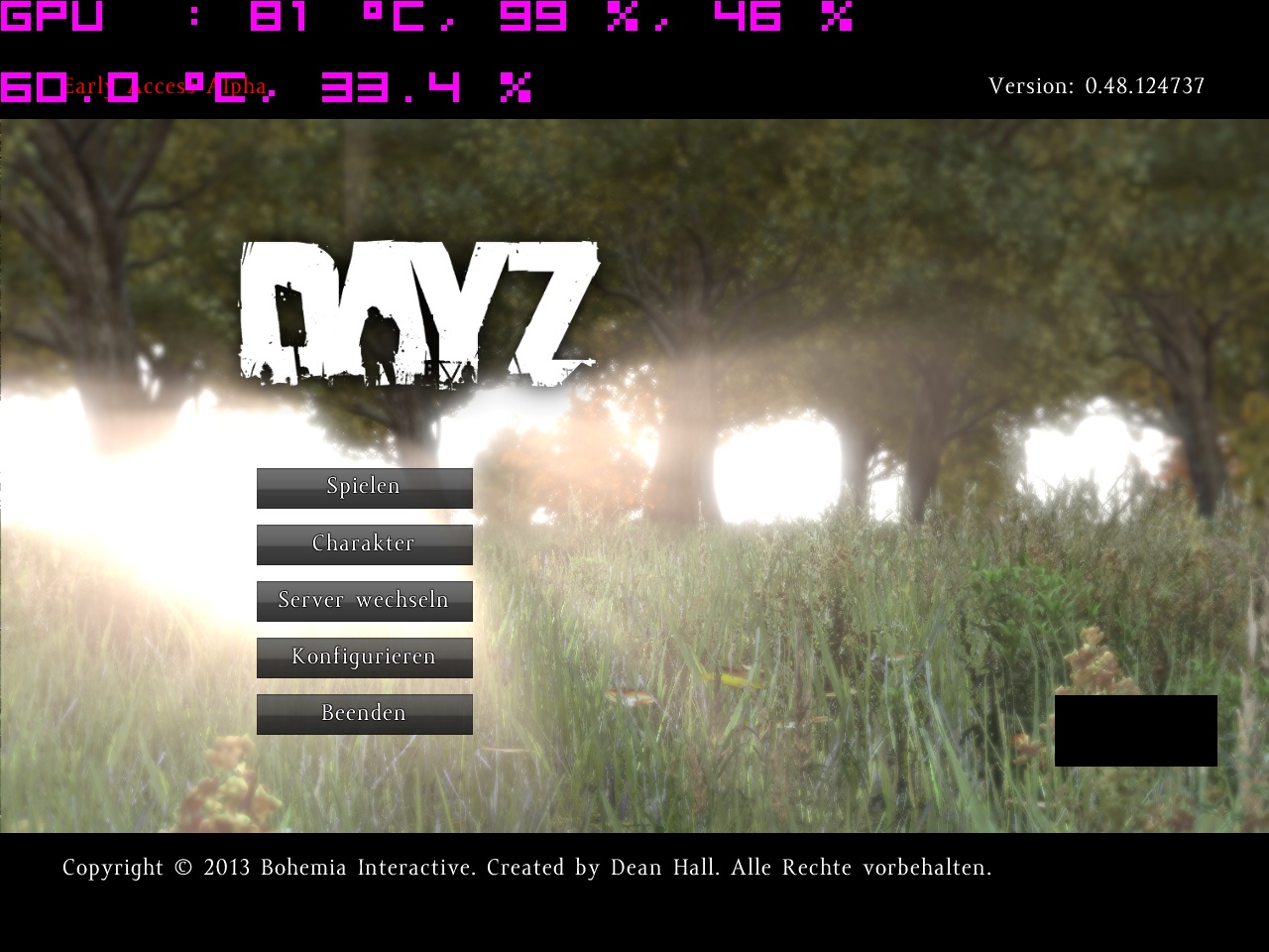 Abb 2: DayZ Menü nach 3 Minuten