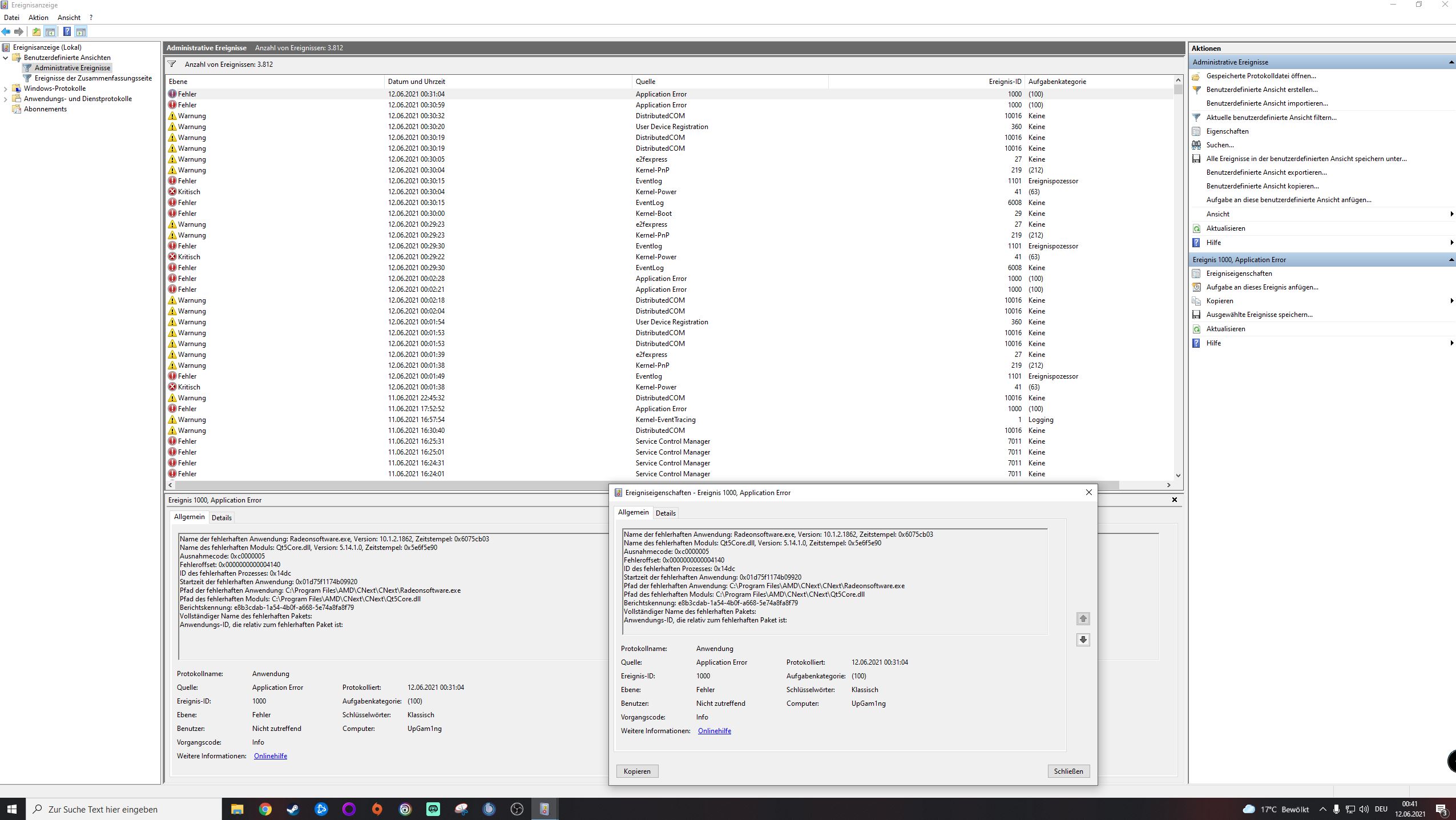 Wenn ich neu Starte kommt ebenfalls die Meldung: "Default Radeon WattMan settings has been restored due to unexpected system failure"
