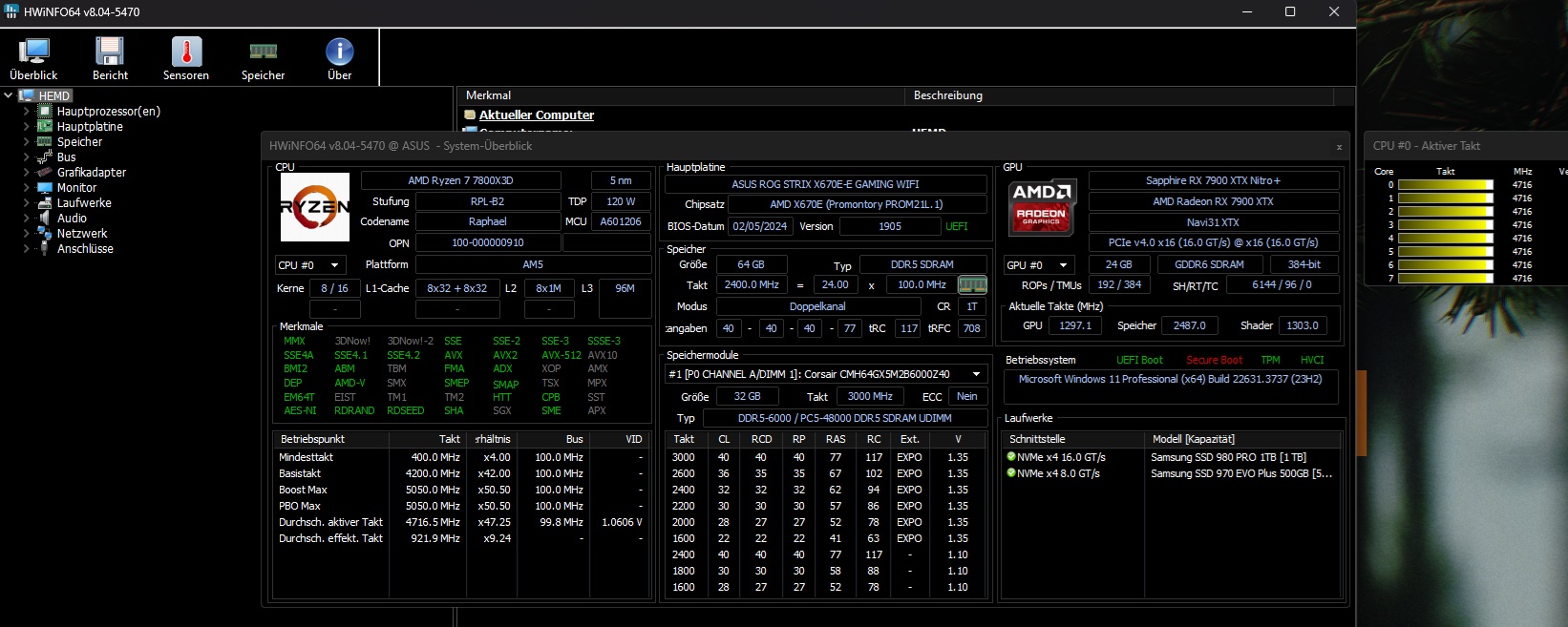 - Mainboard: ASUS ROG STRIX X670E-E GAMING WIFI
