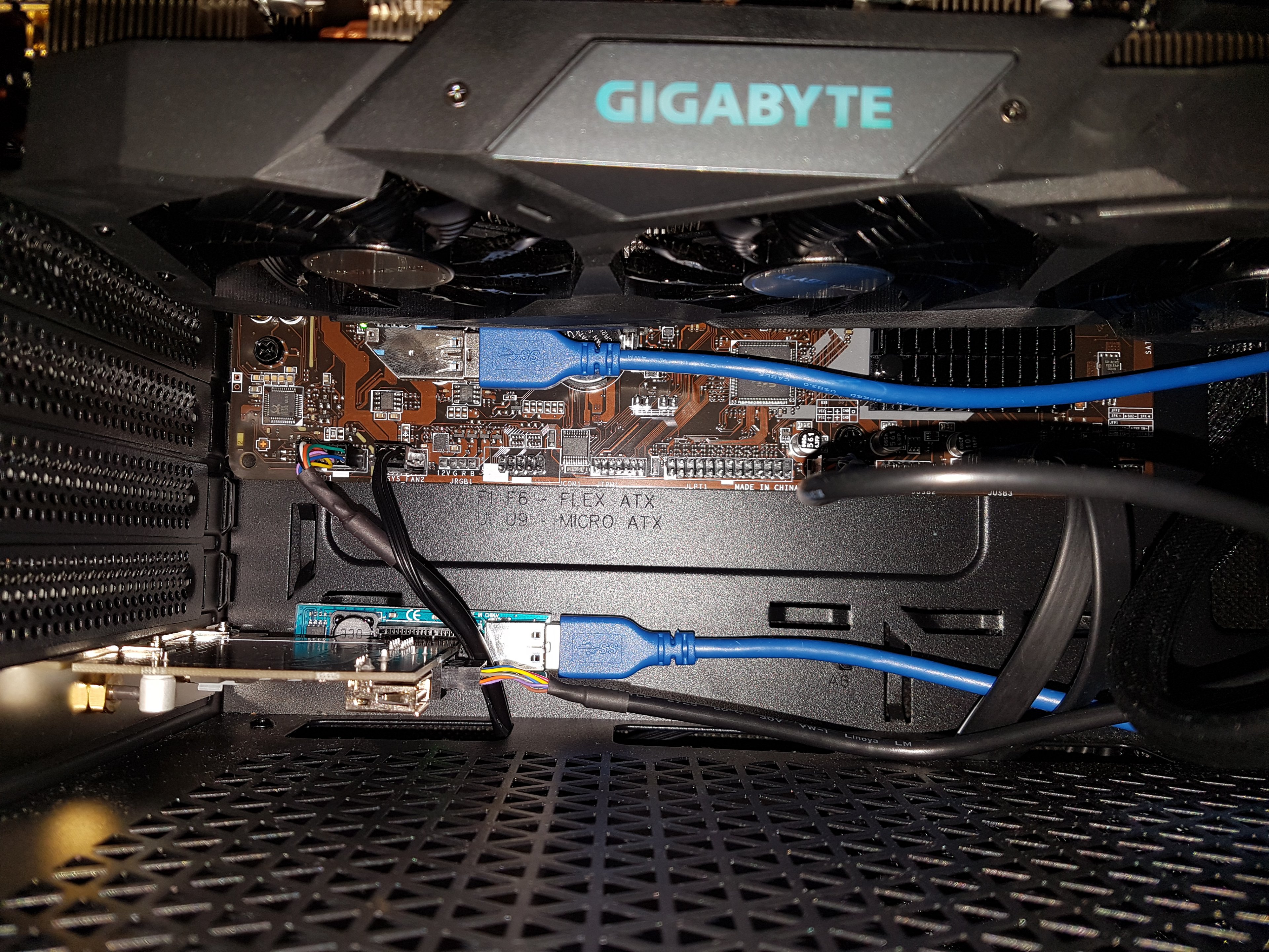 Da ich leider ein mikroATX Mainboard habe, benötigte ich, um neben meiner Grafikkarte eine WLAN-Karte einzubauen, einen Adapter. Deshalb lief die letzte Woche mein PC ohne die WLAN-Karte und das einwandfrei.