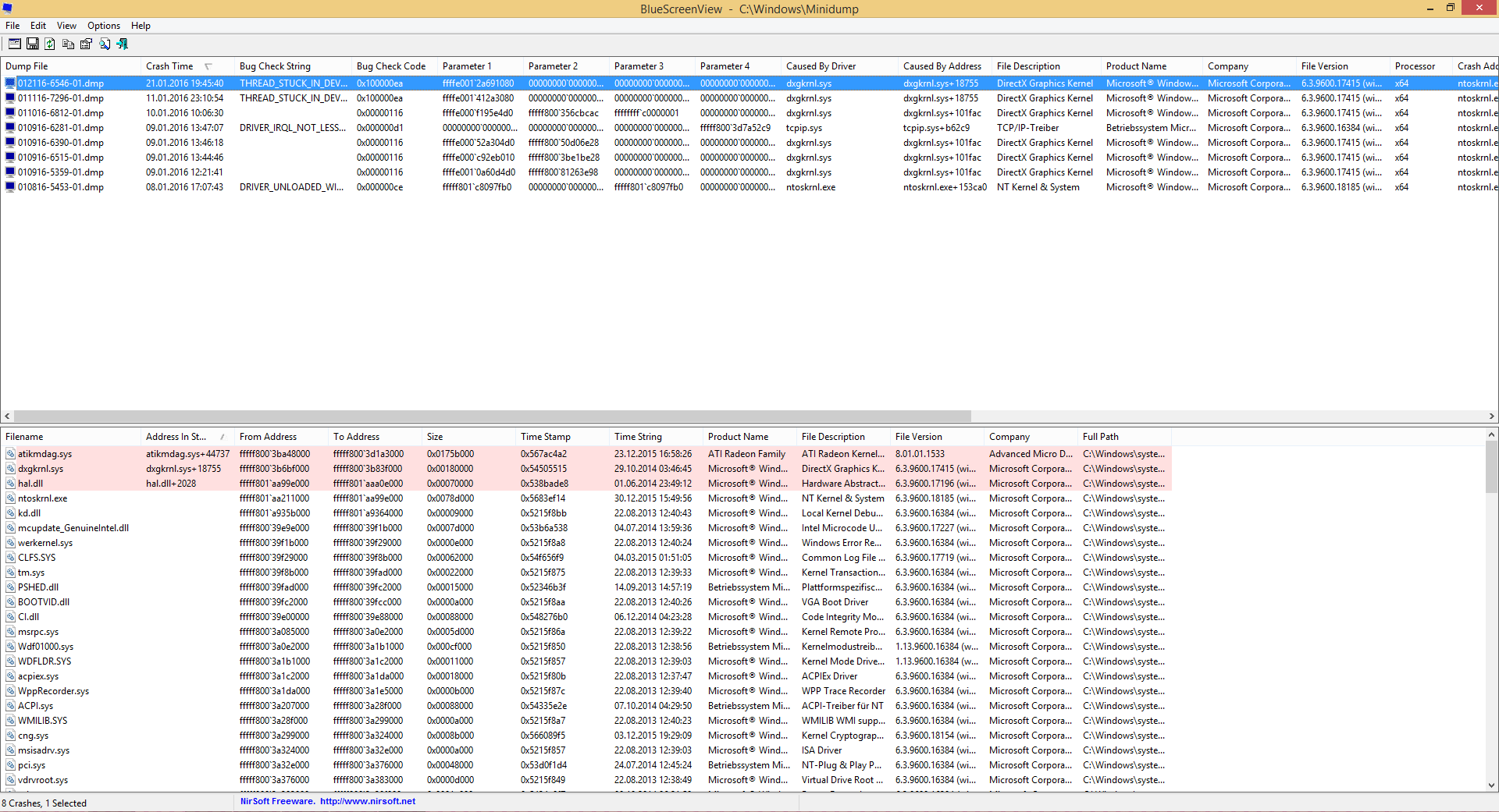 So hab den Bluescreenviewer mal an gemacht, da ich leider nicht sehr viel mit den Daten anfangen kann, habe ich 2 Screenshots angehängt.