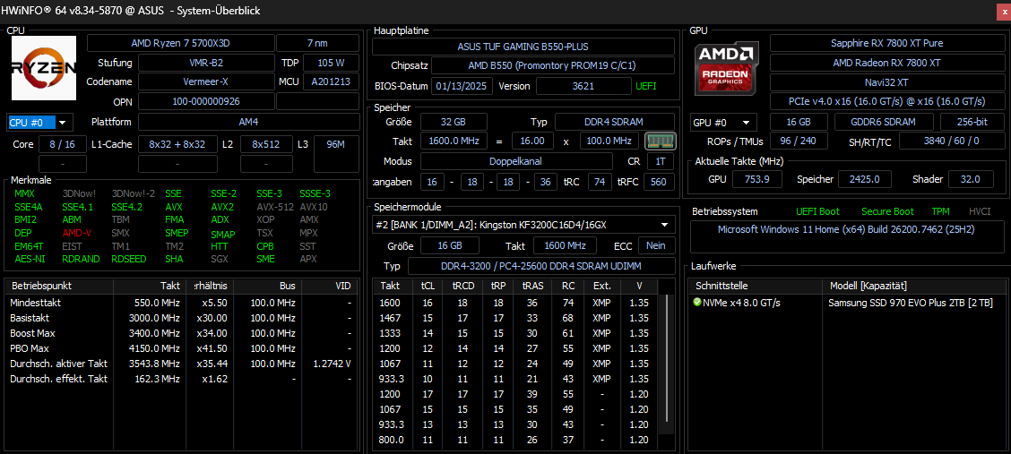 - Arbeitsspeicher (RAM): 32GB Kingston Fury Beast 3200mhz