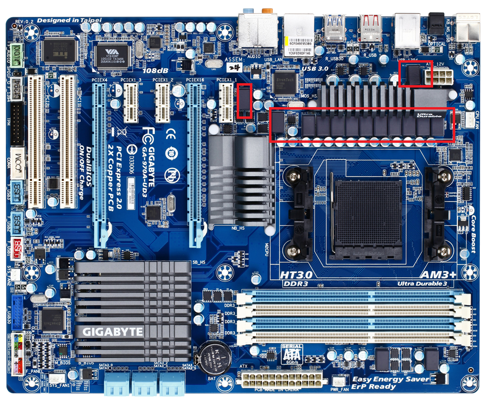 - Mainboard: Gigabyte GA-970A-UD3